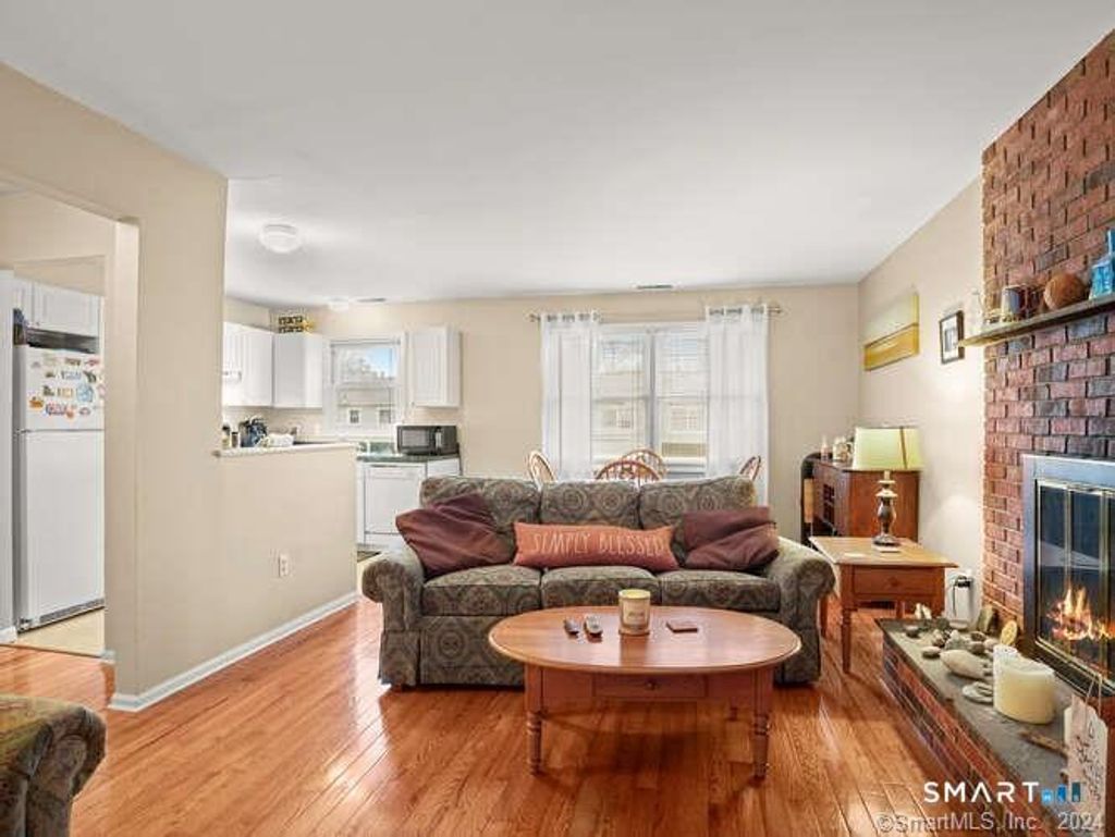 Welcome to this well-maintained end-unit condo in the desirable Southwind Village community, offering 893 sq ft of comfortable living space. This move-in ready 2-bedroom, 1-bath home features new hard wood flooring throughout and all brand-new windows, along with a spacious living room with a cozy wood-burning fireplace. The primary bedroom includes sliding doors leading to a private deck, perfect for relaxing or entertaining. A full bath with tile-surround tub/shower and a separate laundry/storage room add convenience. Ideally located near Fire Engine Pizza, Cafe Melba, and the Melba Shopping Plaza, and just minutes to Bayview Beach and Gulf Beach with fishing pier, picnic areas, and views of Charles Island. A perfect opportunity for low-maintenance coastal living!