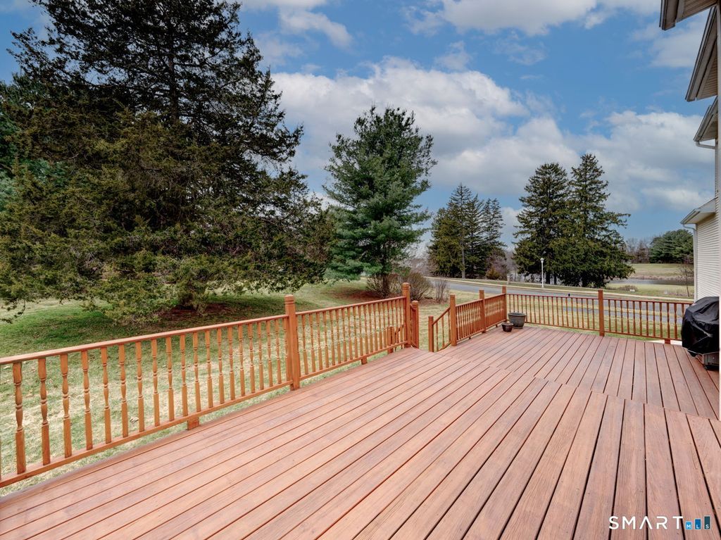 Another hole-in-one! Bask in the pretty view from this impressive home set on Glastonbury's popular Minnechaug golf course! Expansive deck, 2-story family room windows & a sprawling primary suite are just some of the reasons to love this home! Formal living room flows through to the light-filled family room via a set of French doors. Family room boasts high ceilings with dramatic windows and a fireplace. White kitchen with stainless steel appliances and granite countertops is on trend! Range hood vents to the exterior, a feature every chef wants! Convenient butler's pantry creates additional storage. Upstairs, enjoy hardwood throughout! Primary suite is a sea of tranquility (or should we say pond?). A great view of the golf course's water feature is a highlight! En suite primary bathroom features dual sinks, jacuzzi tub & shower stall. Generous walk-in closet enhances your comfort. 3 more bedrooms that share a hallway bath and a laundry room round out the upper level. Finished basement has fresh, new carpet, a full bath and is ideal for an office/den and game room. But wait, there's more! Public water, public sewer, natural gas, central air, 3 car garage, level lot, irrigation system, 2019 HVAC. Book your appointment today!