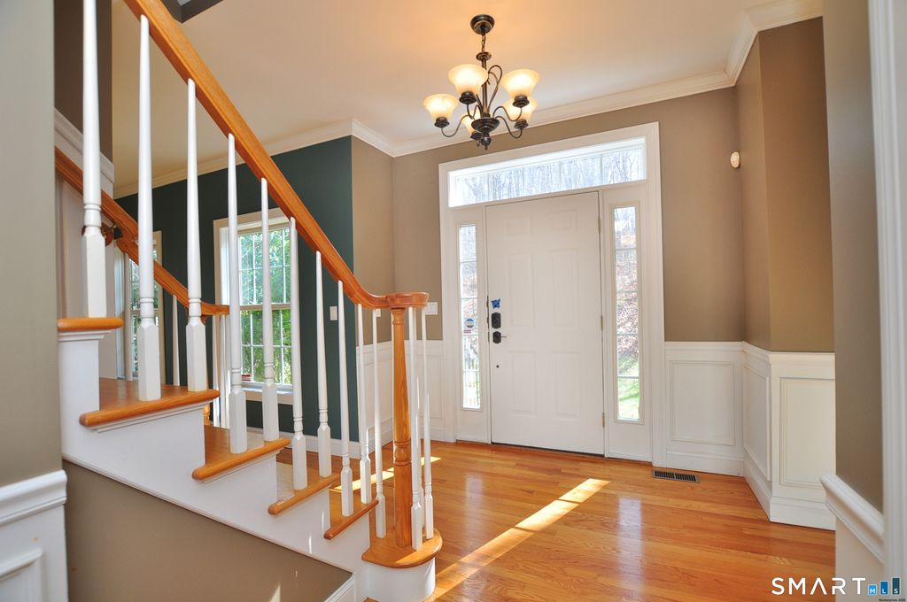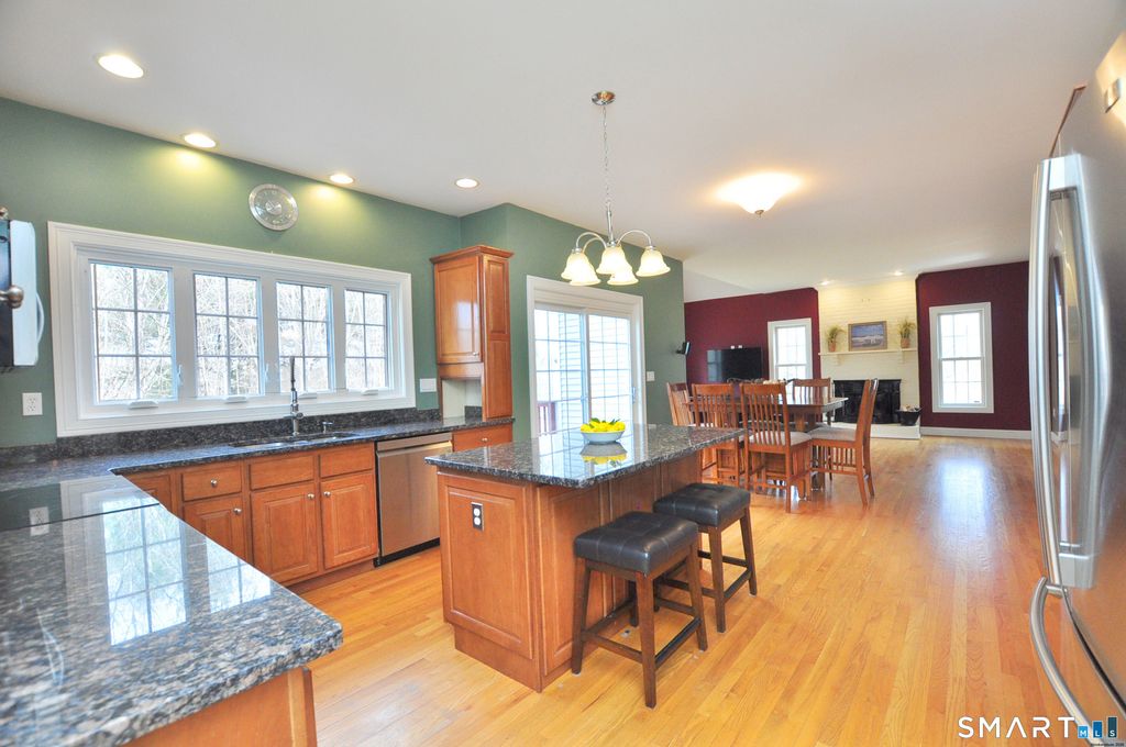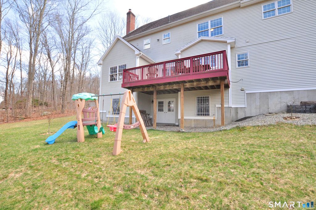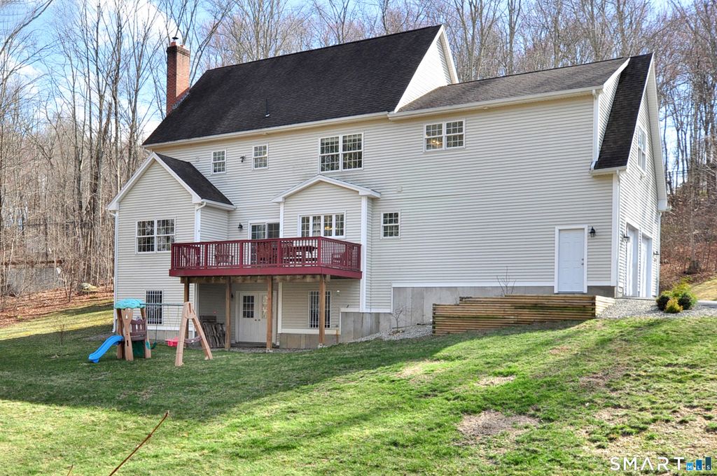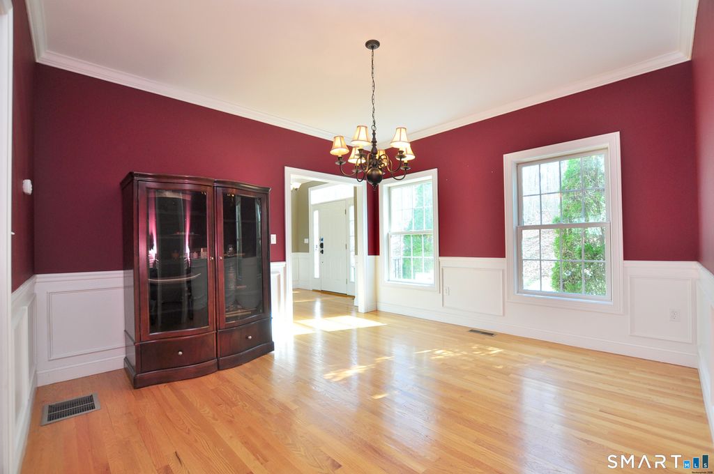 Nestled on more than 2 private wooded acres, along a scenic tree-lined country road, this stunning Colonial offers the perfect blend of privacy, comfort and convenience. Ideally located just minutes from the Town Center, shopping, restaurants, schools, Bliss Memorial Park, Air Line State Park Trail and Routes 66 & 2, providing easy access to Hartford (20 minutes) and the New London Sub Base, Electric Boat, and Coast Guard (approx 50 minutes). Impressive detailed molding and trim throughout, along with beautiful hardwood floors, adds warmth and character to every room. Designed for both entertaining and everyday living, the thoughtfully designed open layout features a spacious eat-in "granite" kitchen that flows seamlessly to the deck, perfect for barbecues, relaxing and enjoying serene views of the oasis like backyard. The kitchen opens to a warm and inviting family room highlighted by a cozy fireplace with a bio brick insert stove, creating the perfect space for comfort and gatherings. A large formal dining room provides the perfect setting for hosting dinner parties and special occasions while a versatile living room offers flexible space to suit your needs. Upstairs, the expansive primary suite features a walk-in closet and a beautifully appointed en-suite bath. 3 additional generously sized bedrooms, a laundry room, a spacious bathroom with granite finishes and a versatile flex room, ideal for a home office, craft room (possibilities are endless), complete the 2nd level.