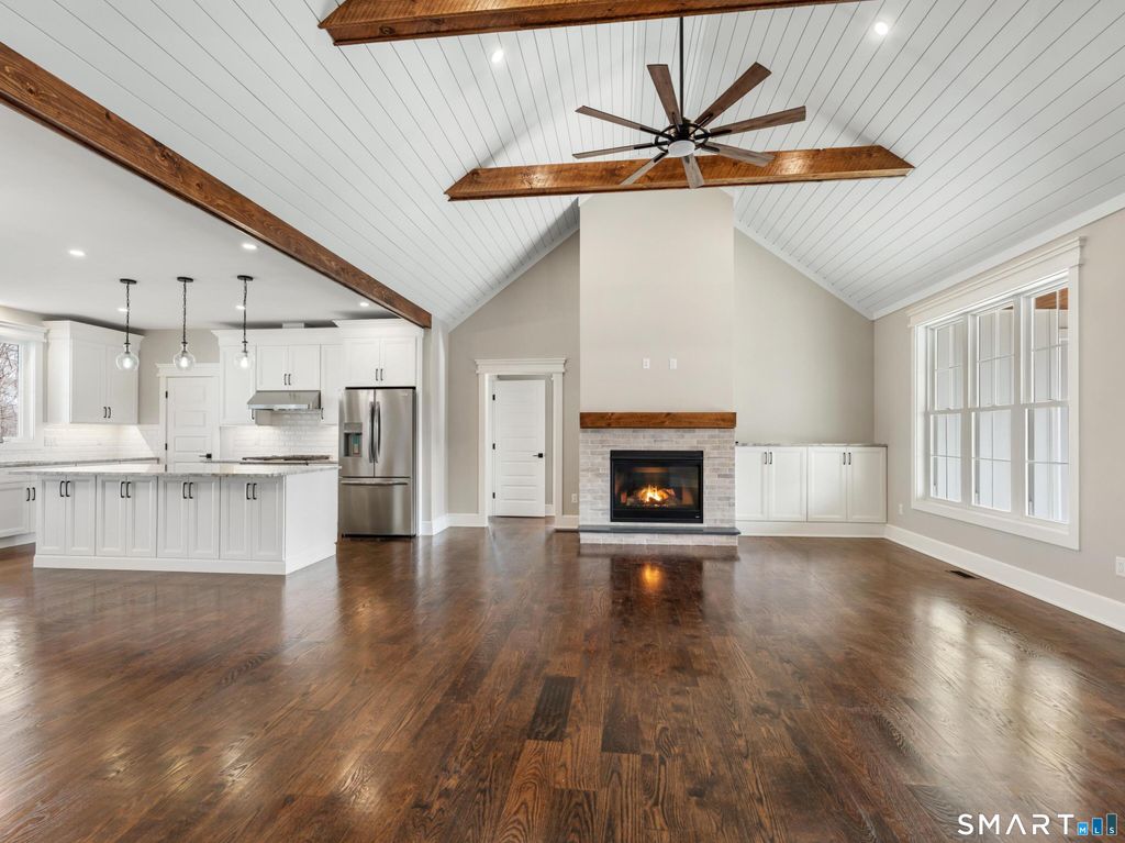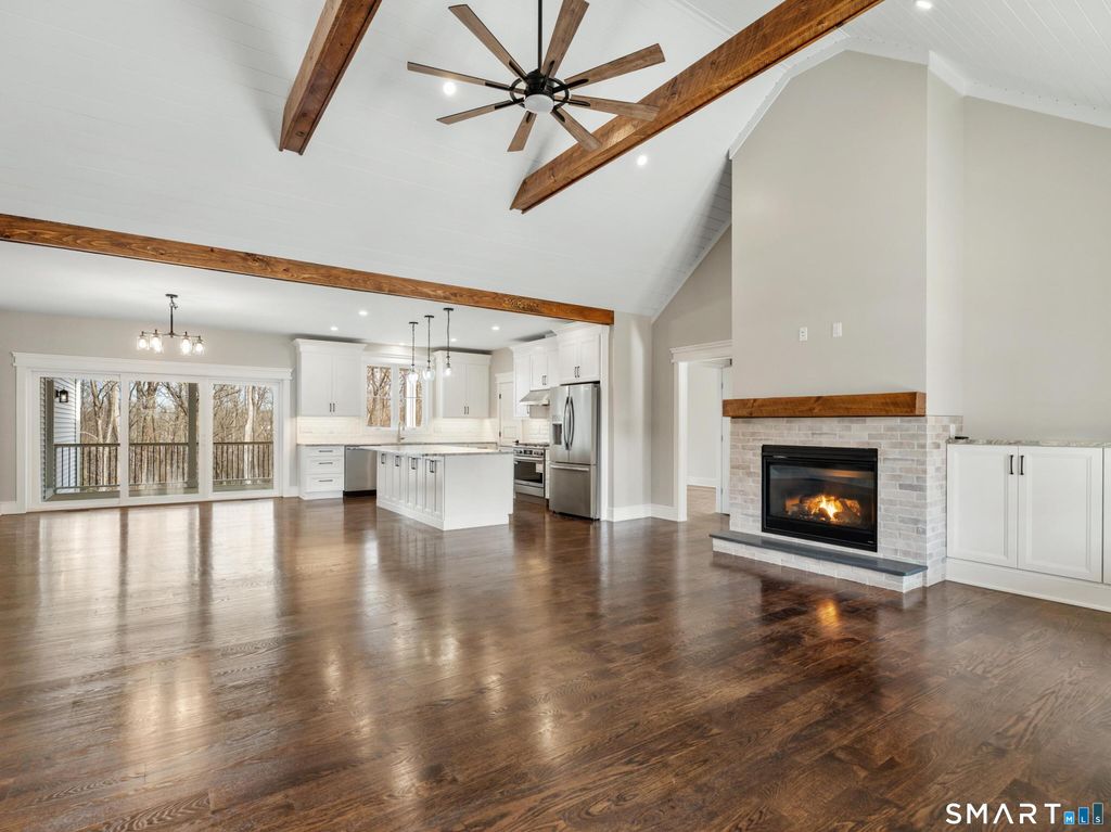 It's ready for move-in! Quality built! Stunning New Construction! This brand-new Modern Farmhouse combines timeless curb appeal with today's most desirable features. Designed with symmetry and character in mind, the exterior showcases a welcoming covered front porch, a central gable, and expansive multi-panel windows that flood the home with natural light. Step inside to a vaulted family room with exposed beams and a cozy fireplace. Open dining area, and a chef's kitchen feature a large center island with seating, a walk-in pantry, and oversized sliders leading to the spacious 24x14 rear covered porch, perfect for outdoor dining. The thoughtful split-bedroom layout provides privacy for the luxurious owner's suite with private porch access, a spa-inspired bath, and a generous walk-in closet. Two additional bedrooms on the main level share a stylish full bath with dual sinks. Mudroom, laundry room with utility sink, and powder bath add to everyday convenience. Upper level (with own heat exchange) expands your living possibilities, offering a loft, bedroom, full bath, and walk-in storage. Additional highlights include: a three-car garage with natural light. This home features a full walk-out basement perfect for a home gym or office. This home is surrounded by many walking trails. Located in the center of Litchfield County, Goshen is the home of Sunset Meadow Vineyards, Action Wildlife Foundation, The Goshen Fair, Ivy Mt Park, and many nearby restaurants.