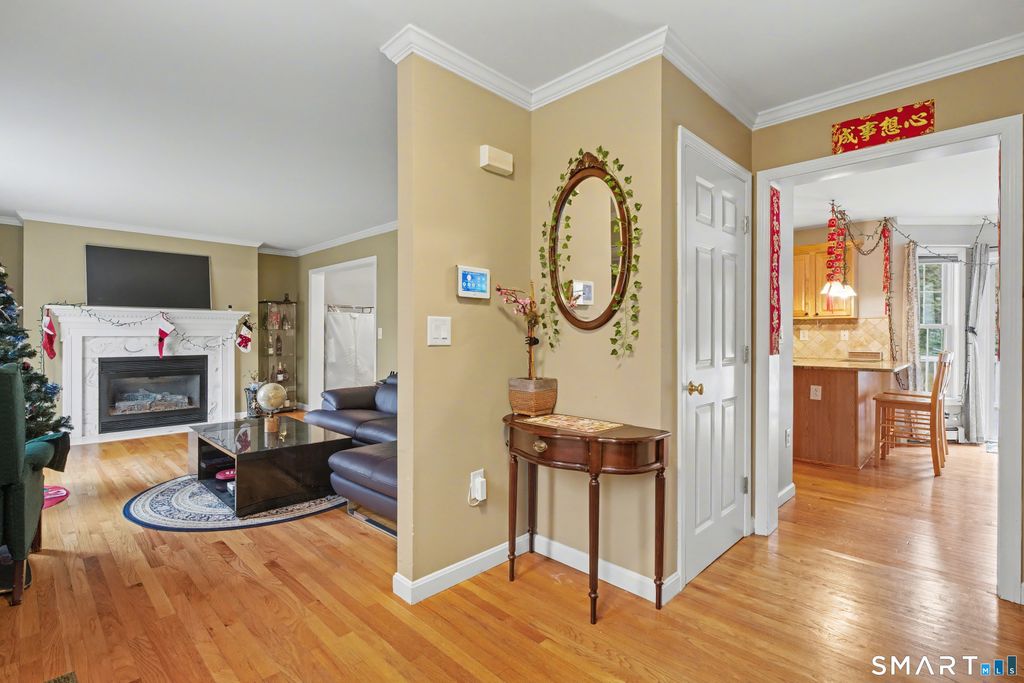 Welcome to this beautifully maintained Colonial nestled in a desirable and established neighborhood in Mystic/Groton. Offering 3 bedrooms, 2.5 bathrooms, and a versatile additional room, this home is truly move-in ready. The main level features gleaming hardwood floors and elegant crown molding throughout, highlighted by a cozy gas fireplace with a marble surround in the living room. The spacious eat-in kitchen is equipped with granite countertops and sliding doors that fill the space with natural light while providing seamless access to the outdoor living area-perfect for entertaining. Upstairs, you'll find newly installed hardwood flooring, a generous primary suite with a walk-in closet and full bath, along with two additional bedrooms and a flexible bonus room to suit your needs. Additional features include central air, generator hookup, composite decking, and an attached garage. Conveniently located near local amenities, shopping, and major routes, this home offers both comfort and convenience.