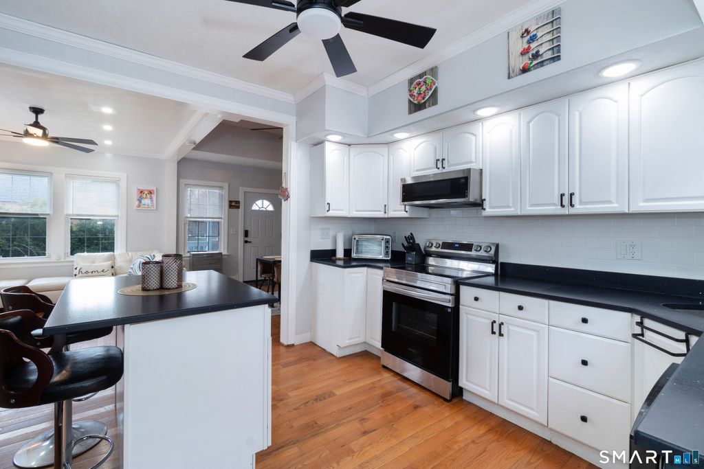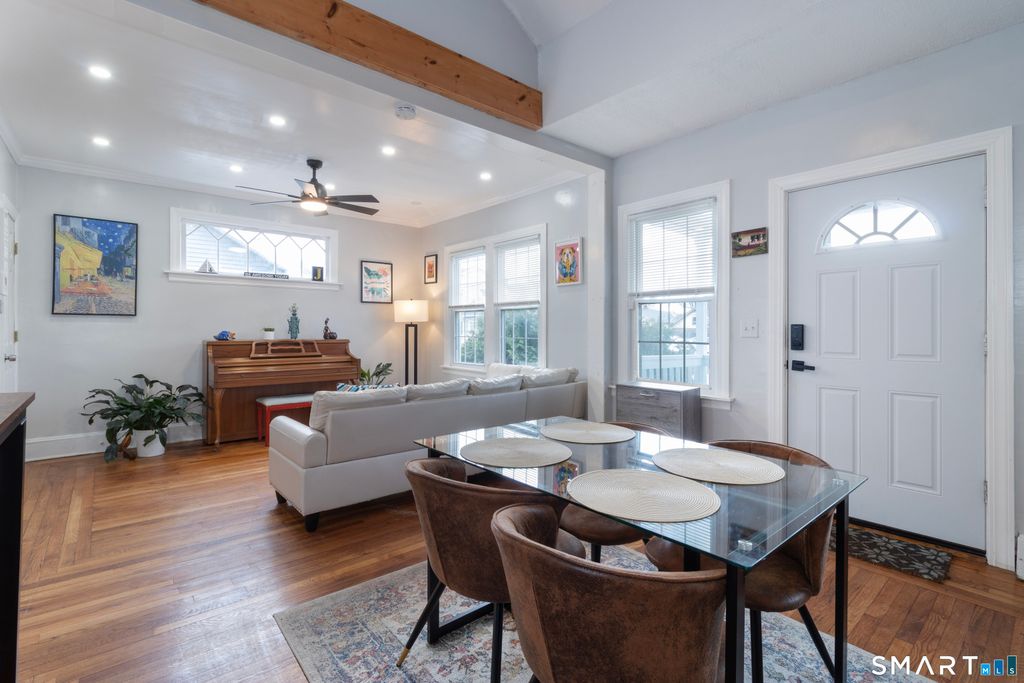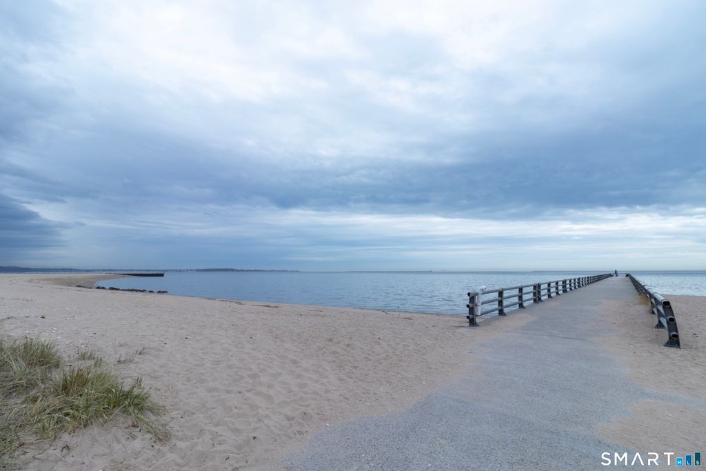 Pretty curb appeal on a quiet street-just in time for summer! This beautifully and thoughtfully updated home is ideally located just steps to the sandy beach, with a short stroll to great restaurants and access to a popular boardwalk perfect for walking, jogging, and cycling. A covered front porch welcomes you into a sun-filled open floor plan featuring gleaming hardwood floors throughout. The kitchen shines with pretty white cabinetry, honed granite countertops, new stainless-steel appliances, and a breakfast bar, with easy access to a deck offering water views and refreshing ocean breezes. The fenced rear yard provides a perfect space for relaxing or entertaining. The first floor includes two bedrooms (one with water views) and a remodeled full bath with a tub/shower enclosure. Stairs to the finished attic/loft offers flexible space ideal for a guest bedroom or home office. The lower level adds even more living space along with an additional full bath with a stall shower. Additional highlights include low-maintenance cedar-impression vinyl siding, gas heat, new central air, and a one-car garage. Perfect as a starter home, downsizing option with one-level living, weekend retreat, or a savvy investment property. Conveniently located with close proximity to New Haven and the Metro-North train for easy commuting.