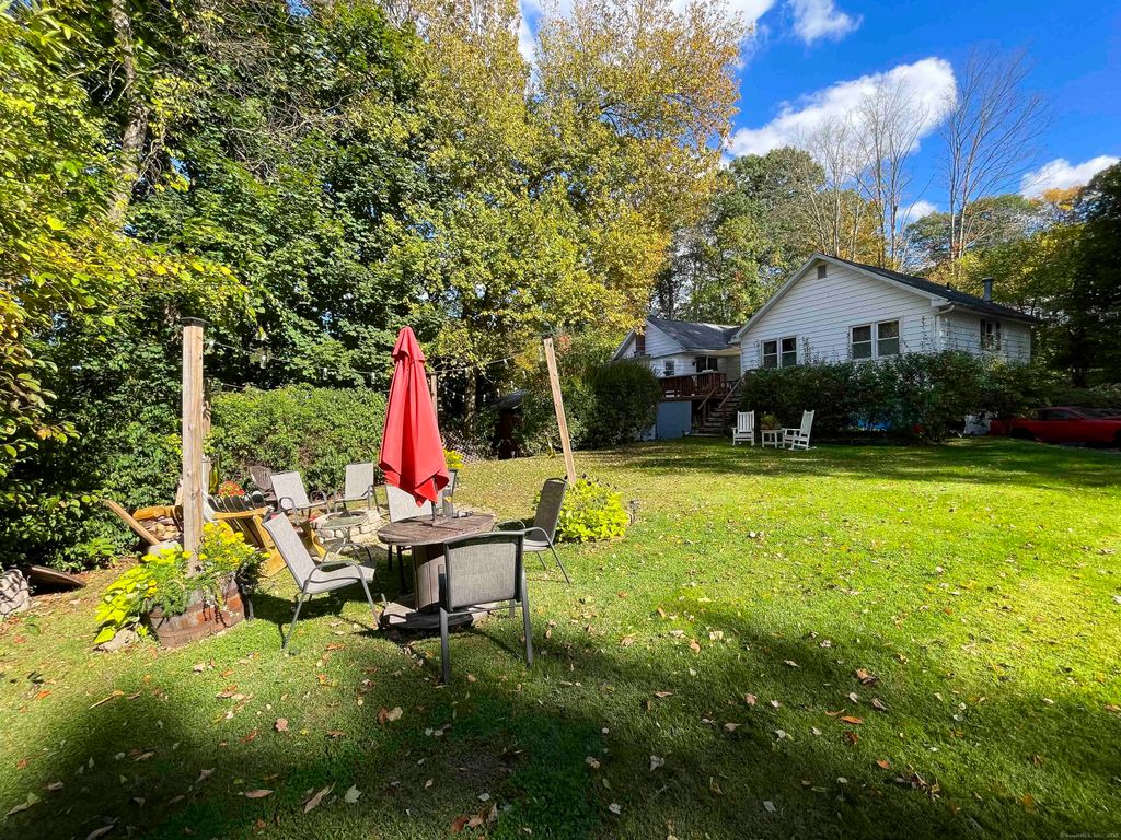 This pretty ranch with plenty of space is filled with charm and character is move-in ready! Set on a nearly 3/4 acre private lot, it features a partially finished walk-out lower level, efficient natural-gas heating, and two car garage. Step into the open main living space with dining area featuring a vaulted ceiling, skylights, toasty gas-log stove, and built-in shelving. The kitchen with stainless steel appliances and newly tiled floor leads to the three main-level bedrooms, including a primary suite with full bath and two closets. A mudroom/office area leads to the lower level consisting of a spacious den with another cozy gas-log stove, a separate room being used as a bedroom, and laundry room. Step outside to enjoy the lovely private yard with plenty of room for gardening, play, or simply relaxing in nature. Only one mile from Quinnipiac University, Sleeping Giant Park and the Farmington Canal Trail! Welcome Home!
