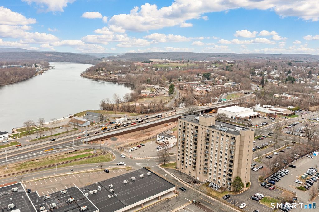 Enjoy one-level living in the heart of downtown Middletown! This high-rise ranch condo at Rivers Edge offers 2 bedrooms and 2 full baths, along with the convenience of an in-unit washer and dryer. The spacious living room features custom built-ins and opens via slider to a private balcony showcasing beautiful views of the Connecticut River Valley and a slight view of CT River. Residents enjoy a host of amenities including a heated indoor pool, fitness center and community room. The monthly condo fee covers heat, water, sewer, and central air for added value and ease. The unit includes one assigned parking space plus ample visitor parking. Ideally located just steps from shops, restaurants, the Middletown Riverwalk, and only minutes to Wesleyan University, Middlesex Hospital, Route 9, and a 20-minute drive to the beautiful Connecticut shoreline. Conventional financing with as little as 10% down is available.