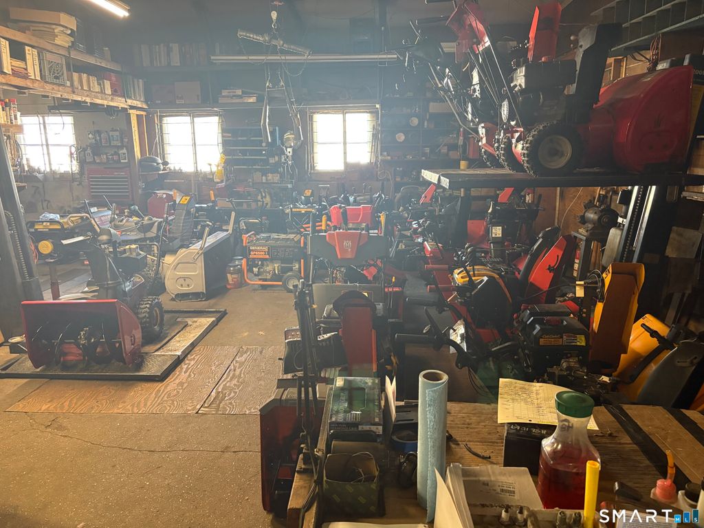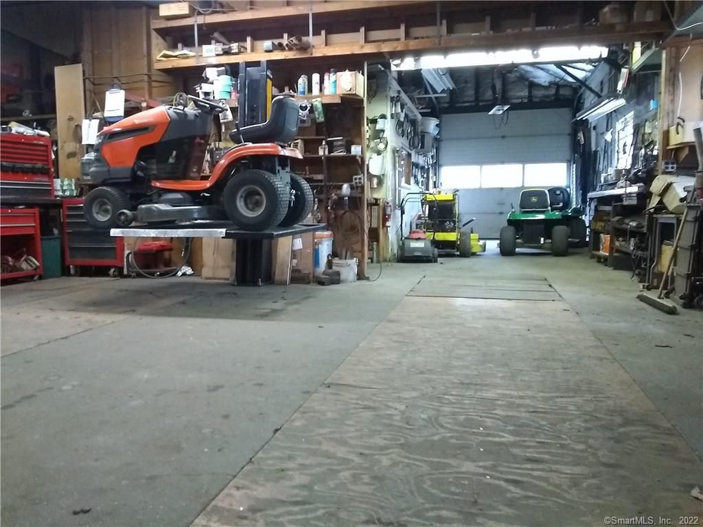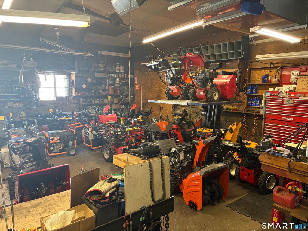 Ideal Business Location. Commercial Space includes 1500 sq ft Warehouse Space with 15 ft Ceilings, 1500 sq ft Shop, 675 sq ft Retail Storefront, 300 sq ft Office Space, Garages, Plenty of Storage, and 1.5 Bathrooms (1 Shower). Lease Opportunity offers a Hyster Propane Fork Lift, Hoist, Overhead Crane, 2 Mechanic Lifts, 2 in Floor Pits, Lawnmower, and New and Used Power Equipment along with all associated Gear/Tools & Inventory. Improvements: New Oil Fired Hot Air Furnace Installed 2018, 330 Gallon Oil Tank Replaced 2018, Central Air Installed 2021.