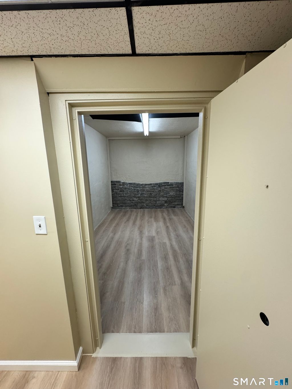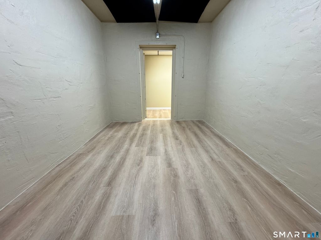 Located in the lower level of the Webster Bank building at 132 Main Street, this flexible commercial space offers a great downtown office/studio/creative space with easy access via elevator and over 100 parking spots on-site. The layout includes a reception/office area and a walk in vault. Ideal for office use, storage, back-office operations, records/archives, small studio/creative workspace, light assembly, or music. Newly renovated, new vinyl flooring, Clean, bright lighting throughout with 24/7 accessibility. Highlights: Newly Renovated Office Space Prime downtown location in a well-known building Space comes with a walk in vault Elevator access to the lower level 100+ parking spaces available on-site Great for storage/office/support space and similar uses *one of the property owners is a licensed real estate broker in Connecticut.