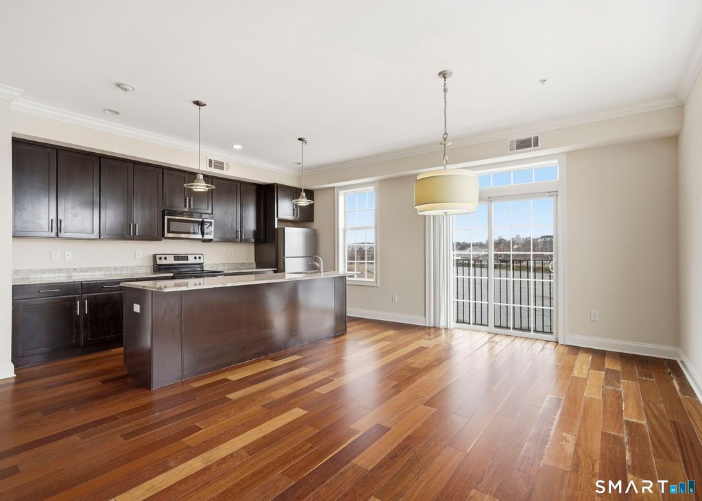 Waterfront 2 bedroom, 2.5 bath condo with direct water views!! - Open and spacious layout offers lots of natural light! - Granite kitchen with center island and stainless steel appliances - Hardwood floors - Enjoy the water views or take advantage of the riverfront boardwalk to stroll to shopping, dining, and more! - Spacious primary suite with walk-in closet - Both bedrooms offer en-suite bathrooms - Private laundry room in-unit - The complex features an on-site fitness room + a clubhouse / lounge room with billiard table - Well-maintained complex with great landscaping, expansive central courtyard, and picnic table area right along the water - Easy access to East Norwalk, Metro North Train, SoNo, the SoNo Collection Mall, local beaches, award-winning restaurants, I-95, and more! - Elevator building - Storage locker available in storage room (near 1st floor gym) - parking space # 6