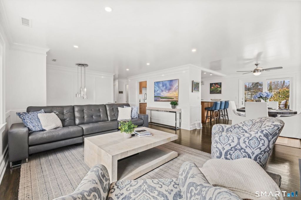 Experience coastal living at its most exceptional in this exquisitely renovated waterfront residence, ideally positioned on a quiet cul-de-sac in Stamford's coveted Cove seaside neighborhood. Masterfully redesigned with impeccable attention to detail, this home blends refined luxury with effortless seaside elegance. From the moment you enter, sun-drenched interiors and sweeping water views create a breathtaking, ever-changing backdrop. Expansive windows frame stunning sunrises and sunsets, filling the home with natural light and coastal breezes. The open-concept layout is both sophisticated and inviting-ideal for entertaining-featuring a chef's kitchen, beautifully appointed living spaces, two gas fireplaces and seamless indoor-outdoor flow. Inside, the home's magazine-quality design showcases curated finishes and a cohesive aesthetic rarely found at this level. A thoughtfully designed garage caters to an active lifestyle, ideal for sports and outdoor enthusiasts. Outdoors, a generous water-view deck sets the stage for unforgettable entertaining, while a private, covered patio with mounted TV offers an intimate setting for relaxed evenings. With beach access just steps away, the lifestyle here is as effortless as it is enviable. A turnkey home for the most discerning buyer, this is a true sanctuary-equally suited as a full-time residence or a luxurious weekend escape. Don't miss this rare opportunity to own a private haven in one of Stamford's most desirable seaside enclaves.
