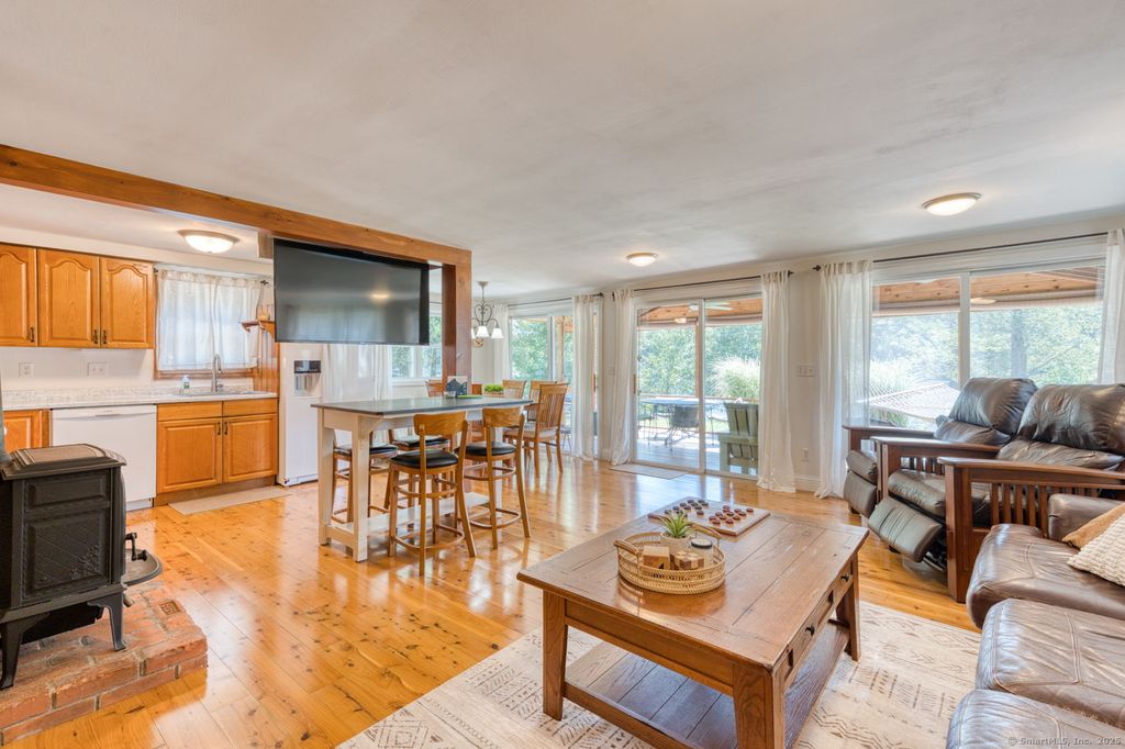 Direct waterfront-your own slice of lakefront paradise, complete with a private dock and scenic water views. Wake up to the water and end your day with stunning sunsets in this peaceful lakefront retreat. Set on a quiet private road, this bass-managed lake offers direct access to boating, kayaking, fishing, and swimming-all surrounded by serene, scenic beauty. Step outside and embrace lakeside living: enjoy morning coffee on the screened-in porch, host gatherings beneath the shaded gazebo, or relax by the smokeless fire pit as the sun sets over the water. Every outdoor space is thoughtfully designed to take full advantage of the waterfront setting. Inside, natural light fills the open-concept layout, with expansive picture windows showcasing water views from multiple vantage points. A cozy wood stove anchors the main living area, adding warmth and charm throughout the seasons-ideal for both everyday living and effortless entertaining. Perfect as a year-round residence, vacation getaway, or investment opportunity, this property offers a rare combination of comfort, privacy, and direct waterfront access. Don't miss your chance to own this exceptional lakefront retreat.