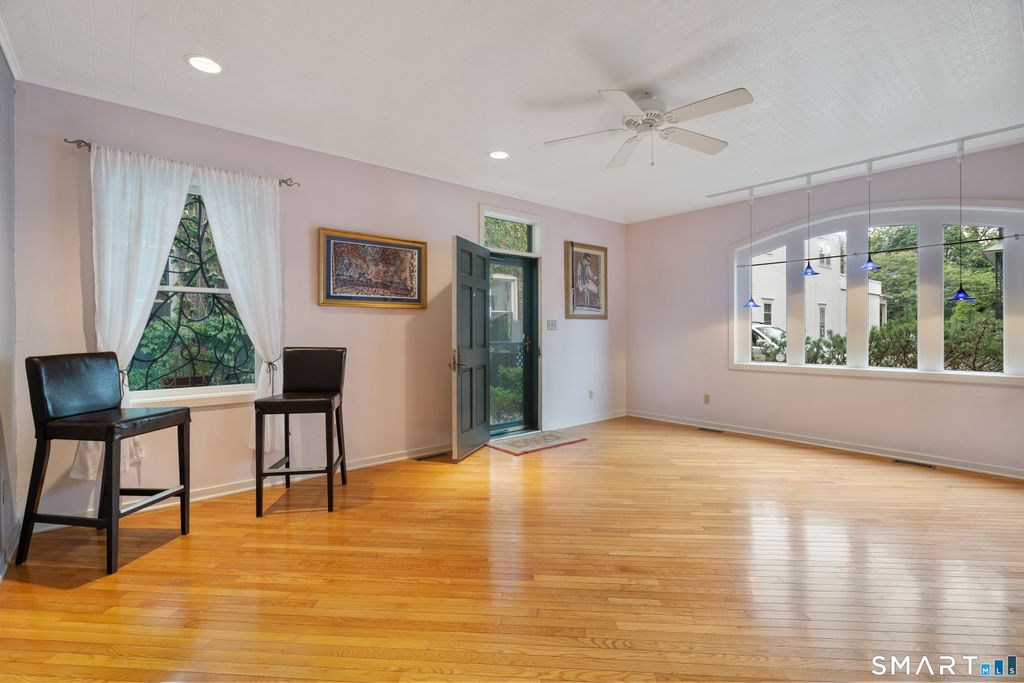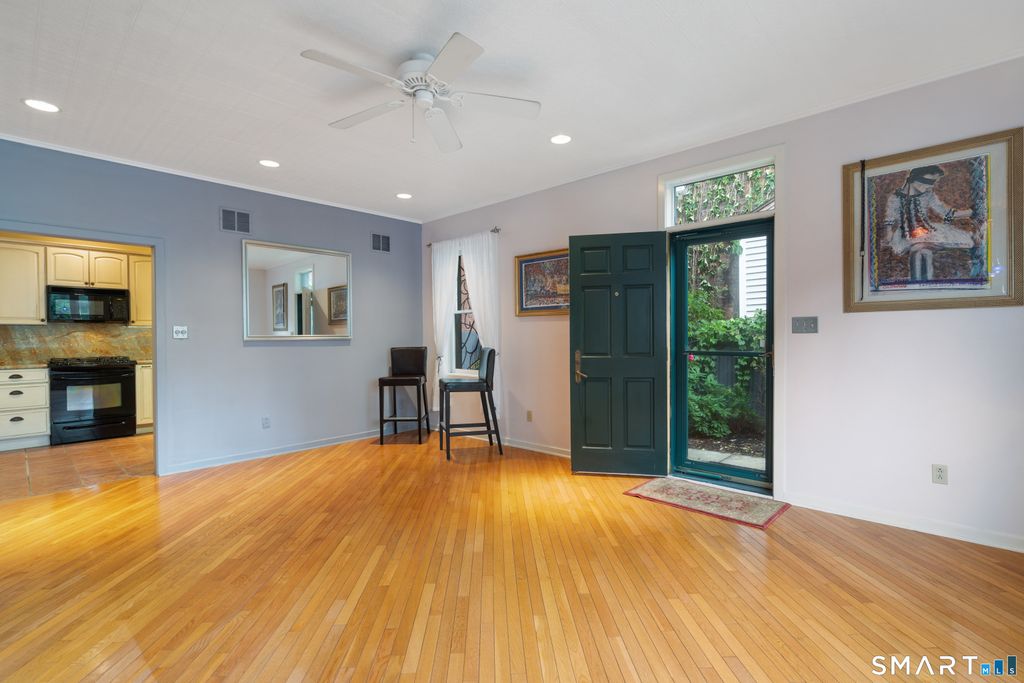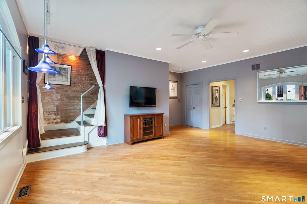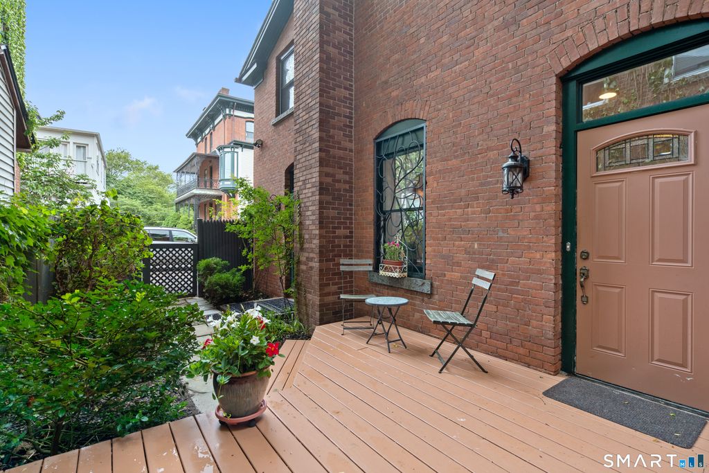 Set in the historic Russell Hotchkiss House, this wonderfully unique twobedroom, oneandahalfbath condo occupies half of a converted carriage house with view of the beautiful, cherryblossomlined Wooster Square Park. The main level offers an open living and dining area with hardwood floors and access to a large deck that can also be reached from the updated kitchen. An updated half bath completes the first floor. Upstairs are two generously sized bedrooms, including a front bedroom with a charming Romeo and Juliet porch. The full bath on this level has also been updated, and exposed brick along the staircase adds character to the space. Additional features include a partial basement with laundry and ample storage, one assigned offstreet parking space, gas heat and central air (both new within the past year), and a petfriendly association of just seven units. The location is hard to beat-steps to worldfamous Apizza, downtown, Yale, and everything Wooster Square has to offer. The property is also eligible for the Yale Homebuyers Program.