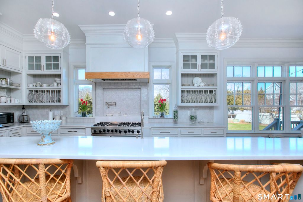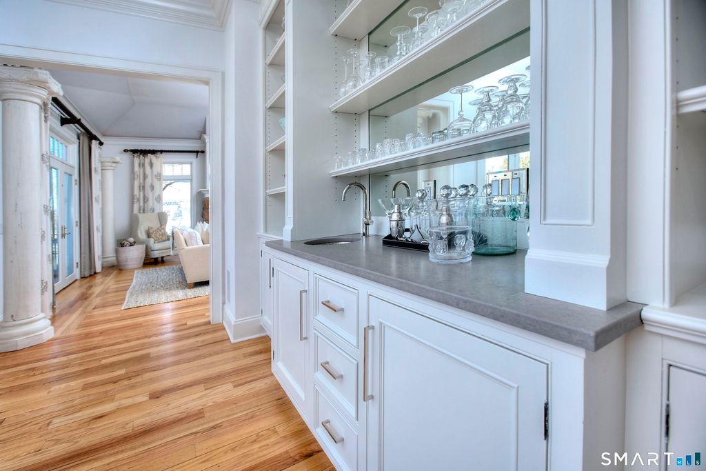 Welcome home to the Gold Coast of Norwalk. Location, space and timeless design come together in this stunning turn-key colonial with waterviews of Long Island Sound. Set on one acre in Norwalk's coveted Shorehaven neighborhood, it's just a short walk to Sandy Beach, the Sprite Island Yacht Club boat launch and the Shorehaven Country Club. Custom features and 9-foot ceilings elevate the main level and make it ideal for both everyday living and entertaining. The family room flows seamlessly into the eat-in kitchen. A first floor private office with full bath also serves as a guest bedroom. Upstairs, the primary bedroom features a fireplace and a sumptuous bath that opens to an outdoor deck. The third floor offers an entertainment center with full bath and an additional office space. A generous deck overlooking the backyard is perfect for relaxing or hosting friends. Nearby is The Shore and Country Club, a private club on Long Island Sound offering members a 25 yard pool, a separate wading pool, 10 tennis courts, beach areas on the Sound, a marina with boat slips, as well as dining and social areas for events, meals and gatherings. 3 Shorehaven is just minutes to Norwalk's famous SoNo district for great restaurants and entertainment. Within one hour to NYC.