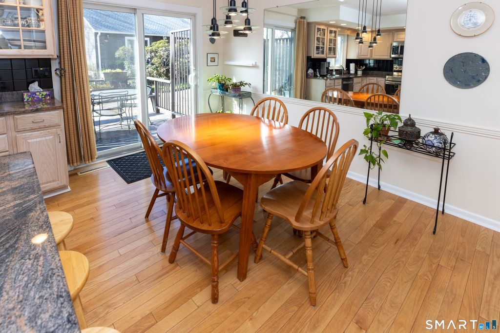 Enjoy easy living just steps from the charm of Ivoryton Village in this beautifully maintained 2-bedroom home, 2 full and 1 half bath, offering 1,384 sq ft of bright, inviting space. The main level features an open and airy layout, highlighted by a remodeled eat-in kitchen with sliders leading to a spacious deck, perfect for entertaining or relaxing outdoors. Hardwood flooring flows throughout, complemented by tasteful updates and central air for year-round comfort. Upstairs, you'll find well-proportioned bedrooms and baths, offering both comfort and functionality. The fully finished basement provides excellent storage and exciting potential with carpet and paneling. Additional highlights include a detached one-car garage and access to the association pool, just a short stroll away. Set in the heart of Essex, recently named the #1 Best Small Town in New England (Article attached) and Yankee magazine (March/April 2026), this is a wonderful opportunity to enjoy low-maintenance living in a desirable village setting. Ivoryton is one of Essex's three distinct villages and home to the historic Ivoryton Playhouse, which once hosted Katharine Hepburn and Marlon Brando and continues to present live theater. Just beyond the village are the Essex Steam Train & Riverboat and the Connecticut River Museum.