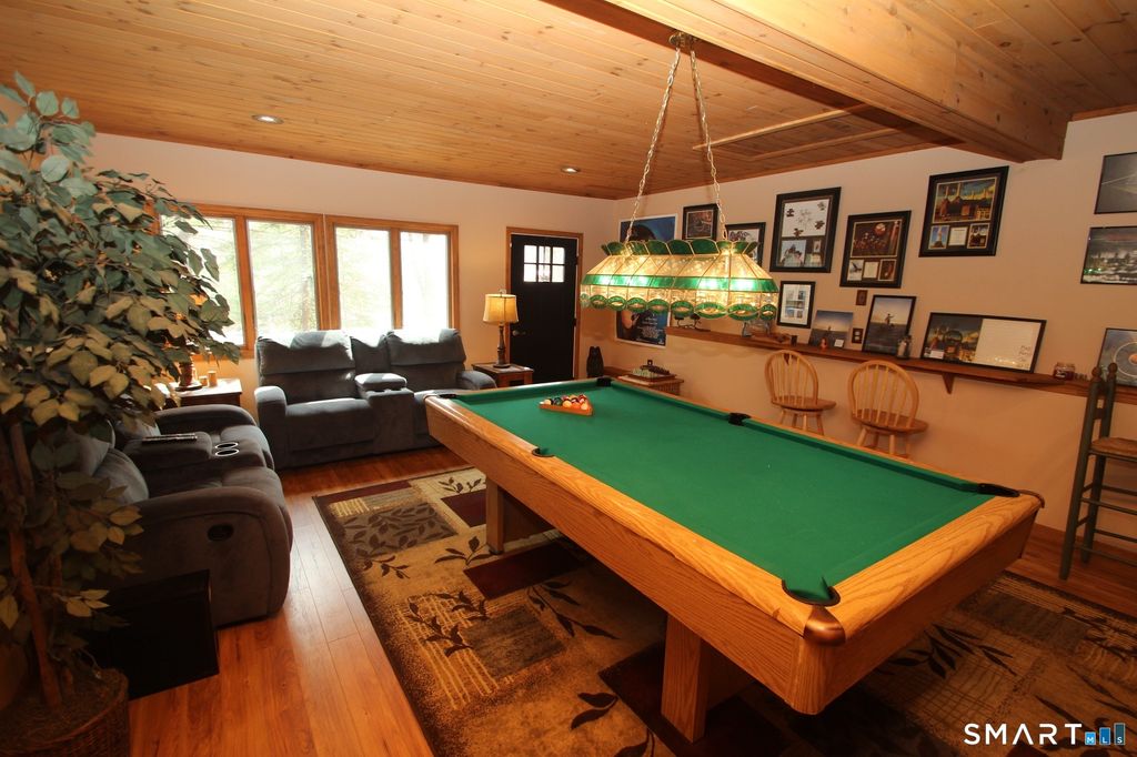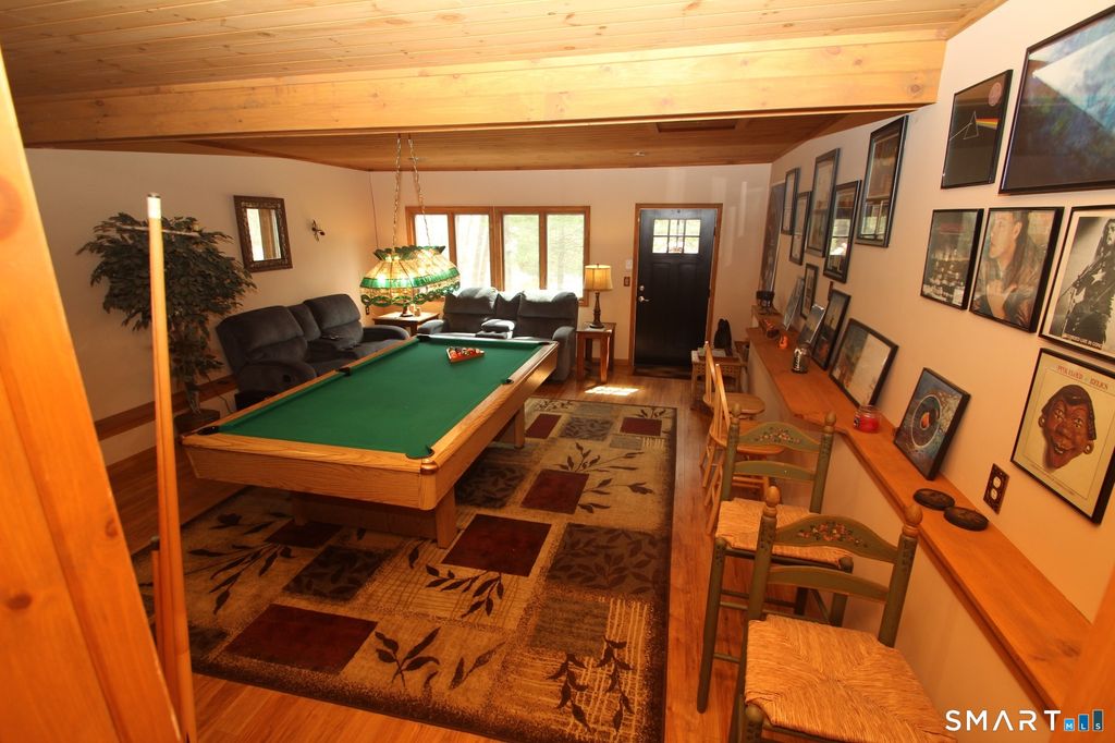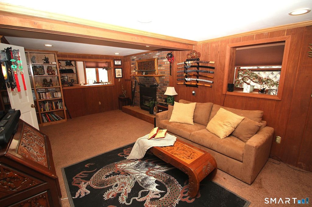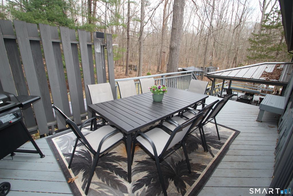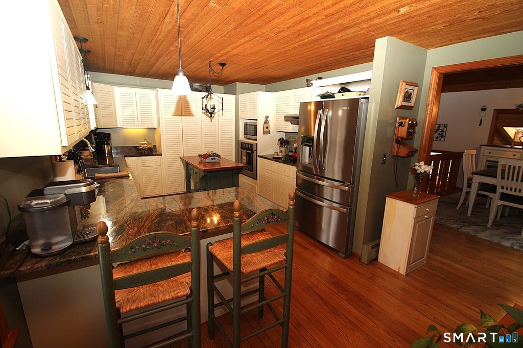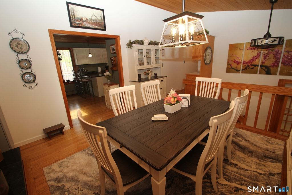 Look no further. This charming and exceptionally different multilevel style home will offer you many years of peaceful and relaxing living. Set back from the road to allow for privacy, yet located in a beautiful area of town, close to town parks, walking distance to river, and only 1.5hrs to Boston. Featuring many upgrades like Metal roof, skylights, remodeled kitchen with new DW, stove top, refrigerator and granite countertops; newly remodeled full bathroom and half bath on main floor, new driveway, new wood floors on main level, granite buffet in DR, water softener, heating system and much more. Relax and enjoy nature even in the middle of winter in your own living room with wall to wall windows for a sunny exposure and vaulted ceiling; watch your favorite games in a well designed media room with separate entrance (pool table may remain), and pellet stove. Formal dining room with vaulted ceiling adjacent to kitchen area featuring a brick fireplace and built-in buffet; family room in lower level with wall to wall built-ins, fireplace and access to a second full bathroom; additionally 3 generous bedrooms, including primary bedroom suite with separate sitting area, access to private balcony and 2 walk-in closets. Multi-level deck w gazebo, large shed, stone firepit area, chicken coop and a very private backyard with a beautiful koi pond, mature trees and abundant perennials. All this located on a country road just minutes to UConn, town play areas and major shopping.