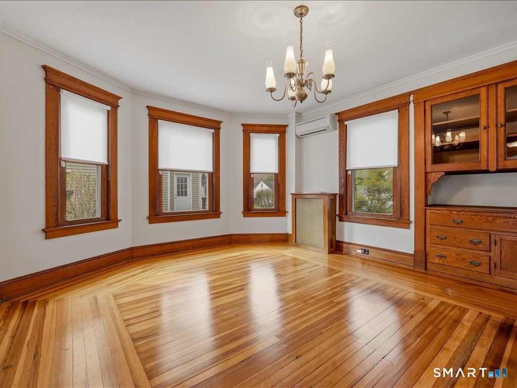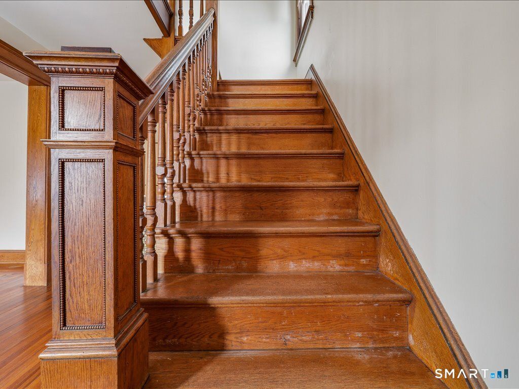 Welcome to 217 Ridge Road, a classic 1913 Colonial set in Middletown's South Farms area, offering timeless charm with thoughtful updates throughout. The framed front porch welcomes you in, a perfect spot to enjoy a quiet morning or unwind at the end of the day. Inside, hardwood floors run throughout the home, creating a warm and comfortable feel across the main level. The living room features a cozy gas fireplace, while the dining room includes classic period built-ins. The kitchen offers a center island, a dedicated laundry room, and a convenient half bath. A mudroom leads directly to the deck and backyard. A mini-split system on the first floor provides efficient heating and cooling. Upstairs, the original staircase leads to three bedrooms and a full bathroom, along with a mini-split system in the primary bedroom. A finished attic adds approximately 291 square feet of flexible space, ideal for a home office, studio, or guest area. The home offers 1,887 square feet of living space, along with a partially finished basement. Recent updates include a new furnace that connects with the steam heat system, a new oil tank, newer vinyl siding, newer windows, and energy-efficient mini-split systems. Backyard features a wood deck and .23 acres of space to relax, garden, or entertain. Just a short distance to schools, shopping, dining, parks, and downtown Middletown with access to local favorites like the Museum, Wadsworth Mansion, Lyman Orchards.