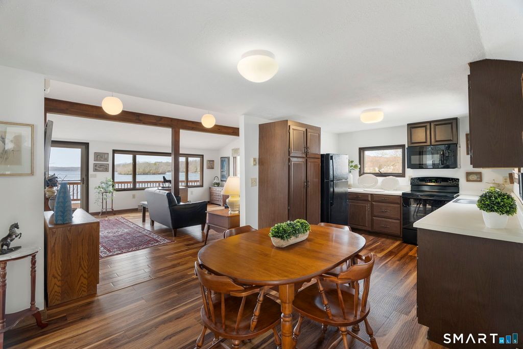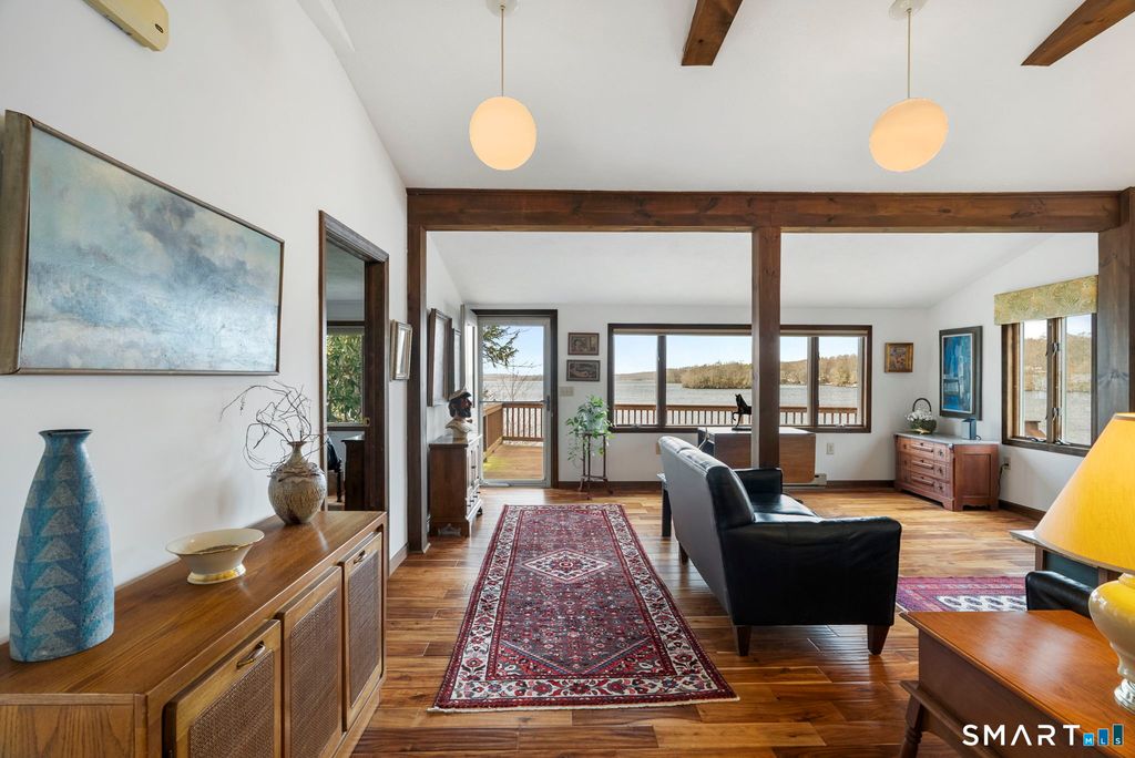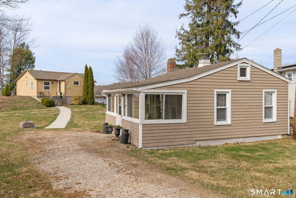 HIGHEST AND BEST 4/8 by 7:00 PM. Rare Lakefront Sanctuary with Panoramic Views. Set along the shores of one of Connecticut's most coveted lakes, this rare lakefront offering comes to market for the first time in nearly half a century-an enduring retreat defined by water, light, and a deep sense of calm. Wake each morning to the gentle shimmer of crystal-clear water stretching beyond nearly every window. Known for its remarkable clarity, the lake reveals a vibrant ecosystem below, creating a sense of tranquility and connection to the natural world. Step onto your private dock and embrace effortless waterfront living. Kayak across glassy waters, take a refreshing dip, fish at sunset, or just exhale and enjoy the stillness of the moment. This setting is one that restores and inspires. The main residence offers 2 bedrooms and 1 full bath with panoramic lake views throughout. Designed for both comfort and function, the home features an open-concept layout, a mudroom, and convenient main-level laundry. A generous deck provides a spectacular view of the 529-acre lake and its accessible, verdant state parks. The home's lower-level patio provides seamless access to the lake via its private dock. A separate cottage expands the lifestyle possibilities, offering a bedroom, full kitchen, bath, living/dining area, and a stunning enclosed porch, an ideal overflow for hosting. A once-in-a-generation opportunity to own a true Connecticut lakefront retreat.