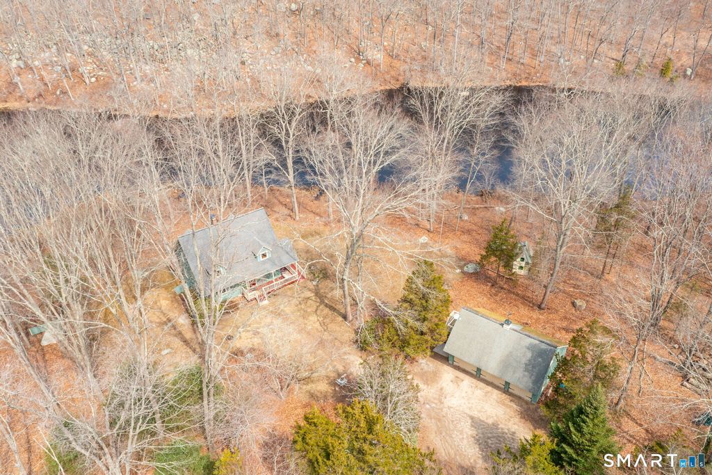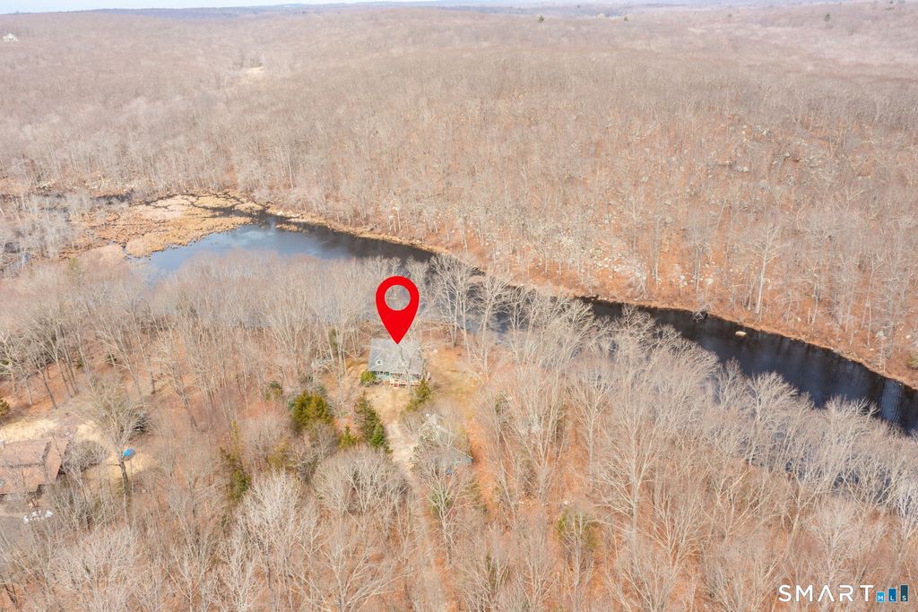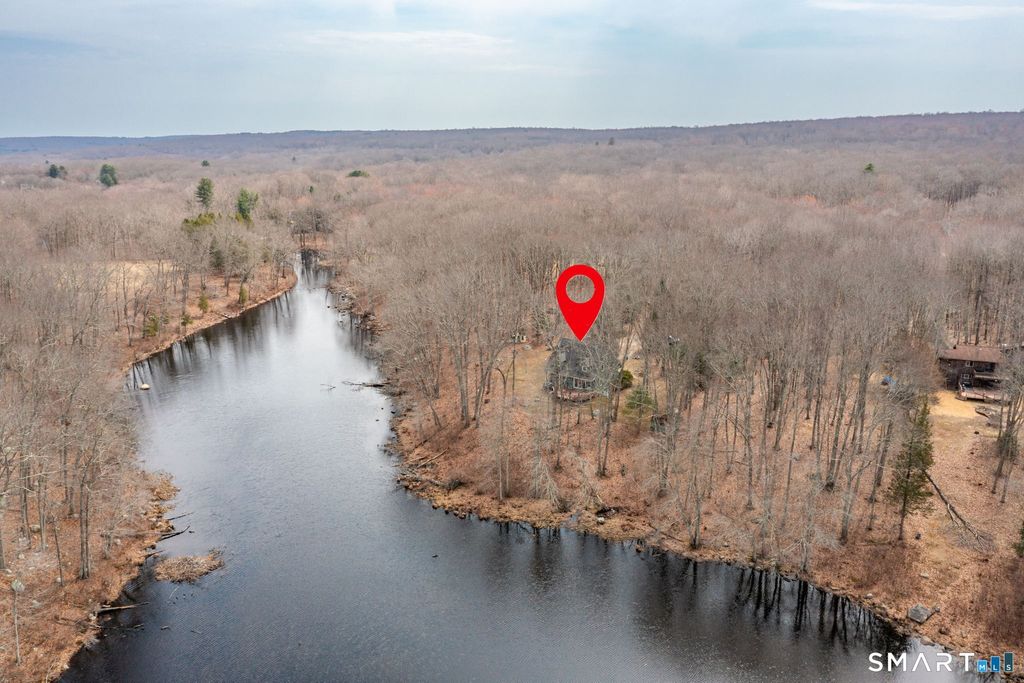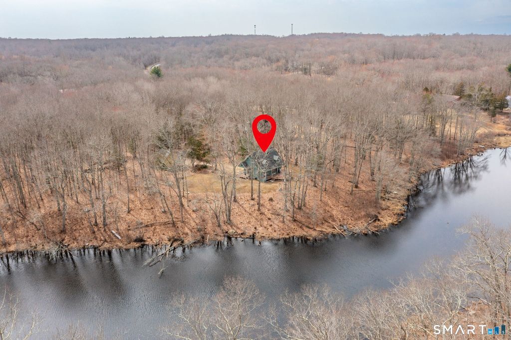 Imagine life in a magnificent log home, set along the edge of a serene 20-acre pond, surrounded by untouched nature. Eagles and osprey just beyond your kitchen window, while deer, fox, beaver, otter, turkey, and abundant waterfowl bring the landscape to life. Enjoy peaceful days kayaking or canoeing right from your own shoreline. Sherman Brook, feeding into Boleher Pond, is part of the DEEP trout stocking program and also offers excellent fishing with both large and smallmouth bass, as well as chain pickerel. Privately nestled on 4.3 acres, this beautiful 3-bedroom home showcases walnut-plugged, solid wide-board oak floors, a striking stone chimney, and impressive 8" x 12" beamed ceilings. Set back approximately 800 feet from the road; the setting offers complete privacy and a true sense of escape. Complementing the home is a three-car carriage shed garage with large unfinished overhead loft, perfect for an art studio, yoga space, or game room, along with a shed and a charming playhouse or garden shed. The exterior features a full-length farmers porch with a spacious rear deck, a welcoming wraparound front porch, a steep 12-pitch roof, milled log siding on the first floor, and classic barn board siding on the gable ends. Solidly built and incredibly efficient to heat and cool, this home is as comfortable as it is captivating... and in the evening, let the gentle chorus of peepers lull you to sleep.