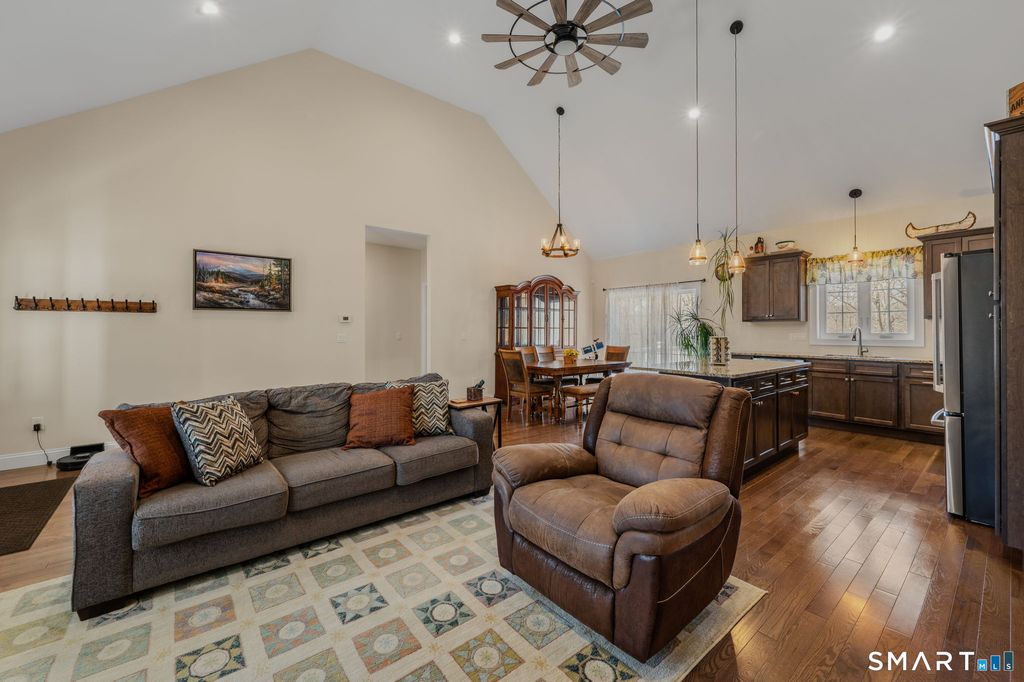 Meticulously built and maintained, this stunning 3-bedroom, 2 full bath home offers the perfect blend of modern comfort and peaceful privacy. Designed for effortless one-level living, the open-concept layout features vaulted ceilings, 9-foot ceilings, and an abundance of natural light throughout. The home is equipped with central air, a tankless water heater, newer septic, and a newer well, all newer mechanicals, providing both efficiency and peace of mind. Step outside to enjoy gorgeously landscaped grounds set on 3.45 park-like acres, complete with water views and a private pond towards the back of the lot (approximately 20 feet in diameter and 8 feet deep at the center). Tucked away on a flag lot, this property offers a serene, set-back setting while still being conveniently located. Additional highlights include an attached two-car garage, generator hookup, and an expansive unfinished basement with full bath plumbing, windows, and walk-out French doors, offering incredible potential for future living space. A rare opportunity to own a thoughtfully built, move-in ready home with privacy, views, and room to grow.