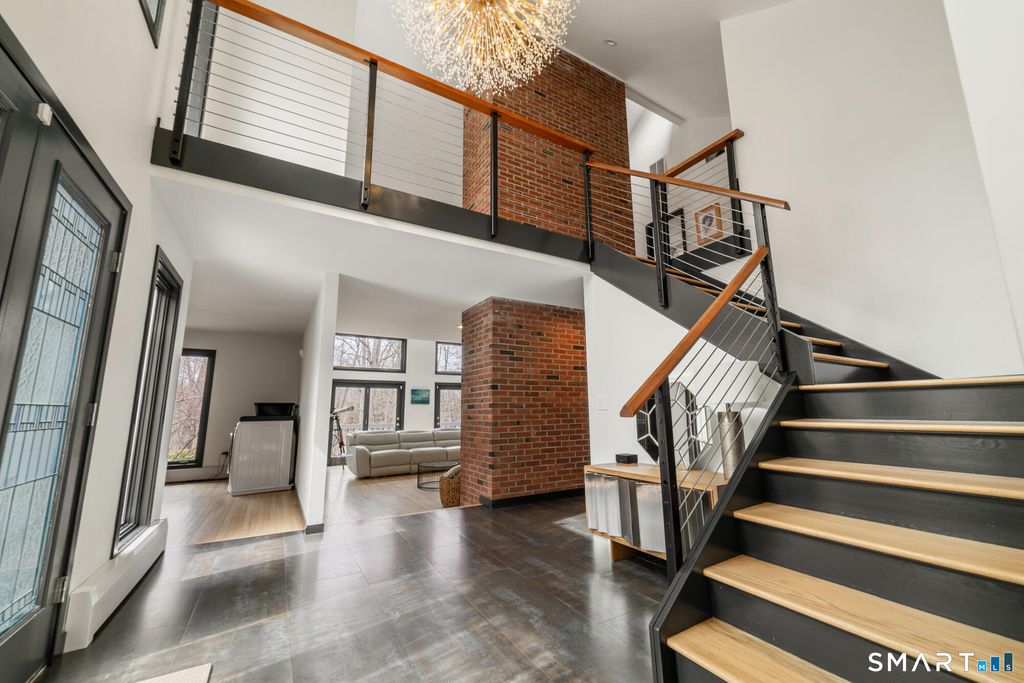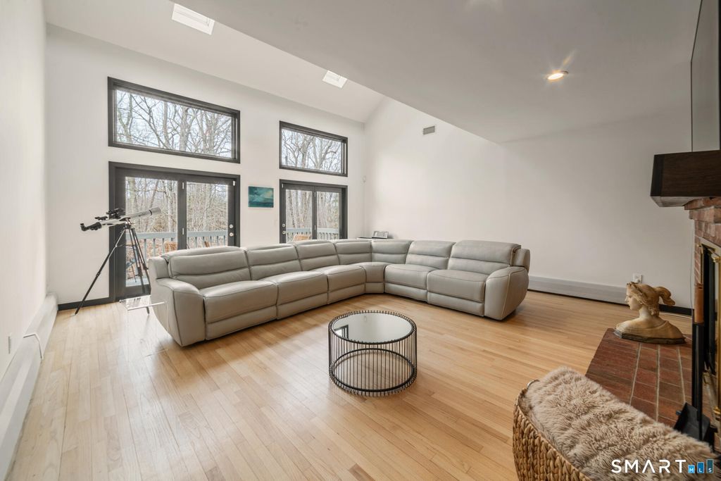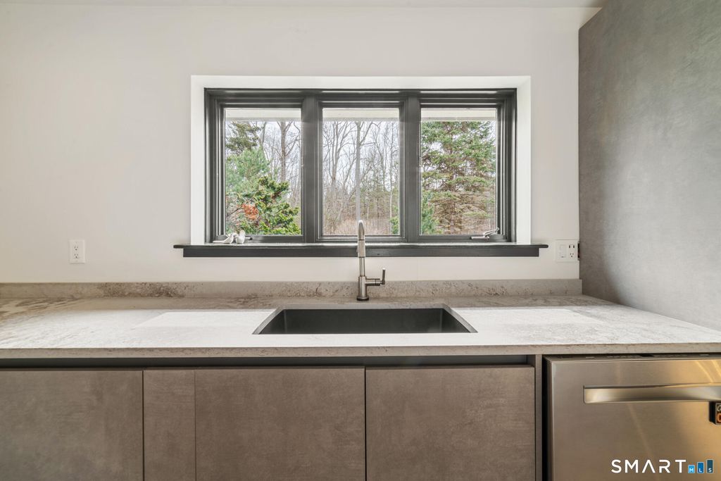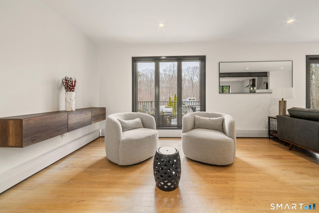 Experience refined living in this exceptional contemporary Guilford retreat, privately set on over 4 acres at the end of a quiet cul-de-sac. Offering 4,880 sq. ft. of beautifully updated living space, this 4-bedroom, 3.5-bath home seamlessly blends modern comfort, elegance and sleek design with energy efficiency. At the heart of the home is a stunning designer kitchen, featuring a dramatic waterfall island and Bertazzoni appliances-perfectly designed for both everyday living and elevated entertaining. A sun-drenched, open-concept layout showcases expansive windows and skylights, hardwood floors throughout, two wood-burning fireplaces and integrated home technology. Luxury meets sustainability with fully owned Tesla solar panels, a Tesla powerwall backup system and Tesla Level 2 car charger. The property also features both attached and detached garages with the latter offering the potential for a home office, studio, or possible in-law suite-subject to approval by the Guilford Planning & Zoning .The first-floor primary suite, flexible additional space above the garage, and a partially finished walkout lower level exceptional versatility and convenience. Step outside to private and beautifully landscaped, wooded grounds. Enjoy an in-ground saltwater pool complemented by a cabana and a pool house with full bath. Seamless indoor-outdoor lifestyle, allows for both entertaining and quiet relaxation.Minutes from highway and town.