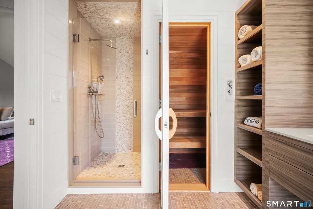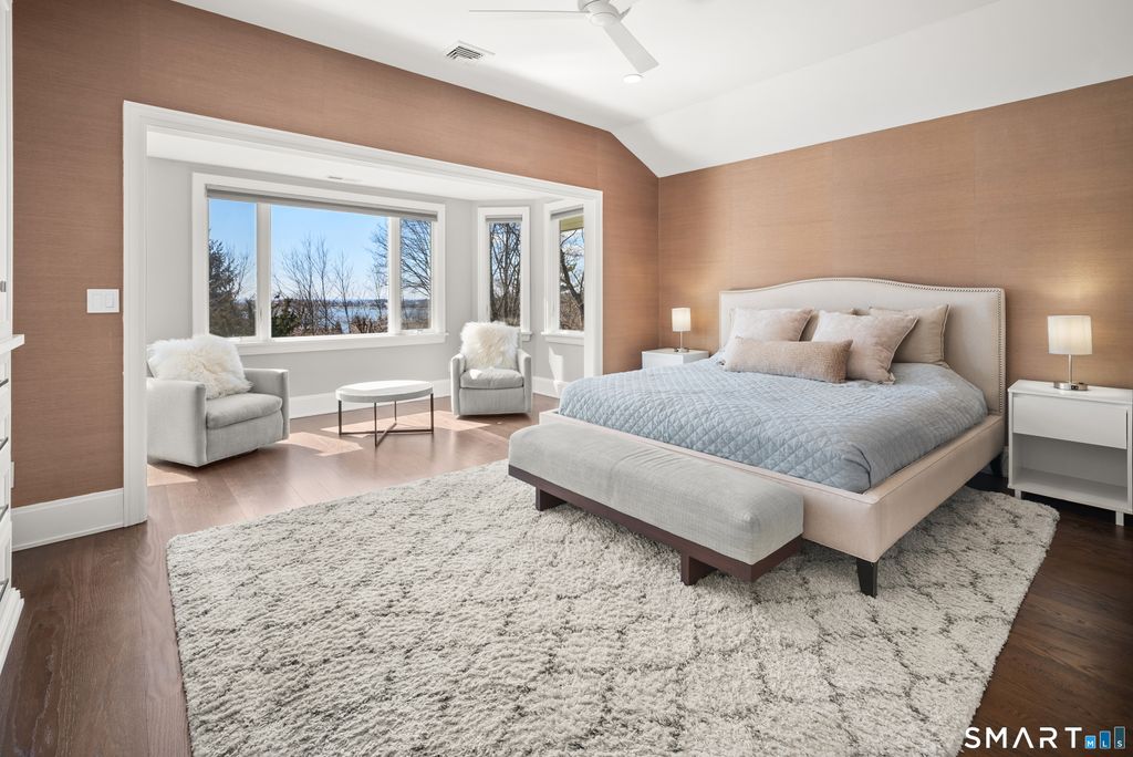 Located within the highly desirable Stony Point association, this exceptional home offers a rare combination of privacy, water views, and convenience just moments from the train, local restaurants, and everyday amenities. This particular home enjoys private dock membership, providing summer boat access just steps from your door. Completely transformed and expanded in 2016, the home features over 6,500sf of thoughtfully designed living space, including 6 bedrooms and 9 baths. Expansive panoramic windows capture serene water views and fill the home with natural light. A dramatic two-story entry foyer and soaring ceilings create an impressive sense of space. The open-concept kitchen/living room is a true centerpiece, featuring a massive 12-foot island with seating for 6, high-end appliances, dual dishwashers, a wine fridge, an ice maker - ideal for both everyday living and entertaining. Designed for effortless indoor-outdoor living, the home seamlessly connects its interior to exceptional outdoor entertaining areas. The spacious family room features sliders that open directly to the expansive covered patio with retractable screens, an outdoor kitchen, and a relaxing pool and spa. The 3rd floor great room has amazing water views, and features a 1/2 bath and wet bar. Additional highlights include a private office, whole house generator, 2 laundry rooms, sauna, a mudroom, and a charming 'hidden' playroom. A truly turnkey offering, this home embodies the very best of the Stony Point