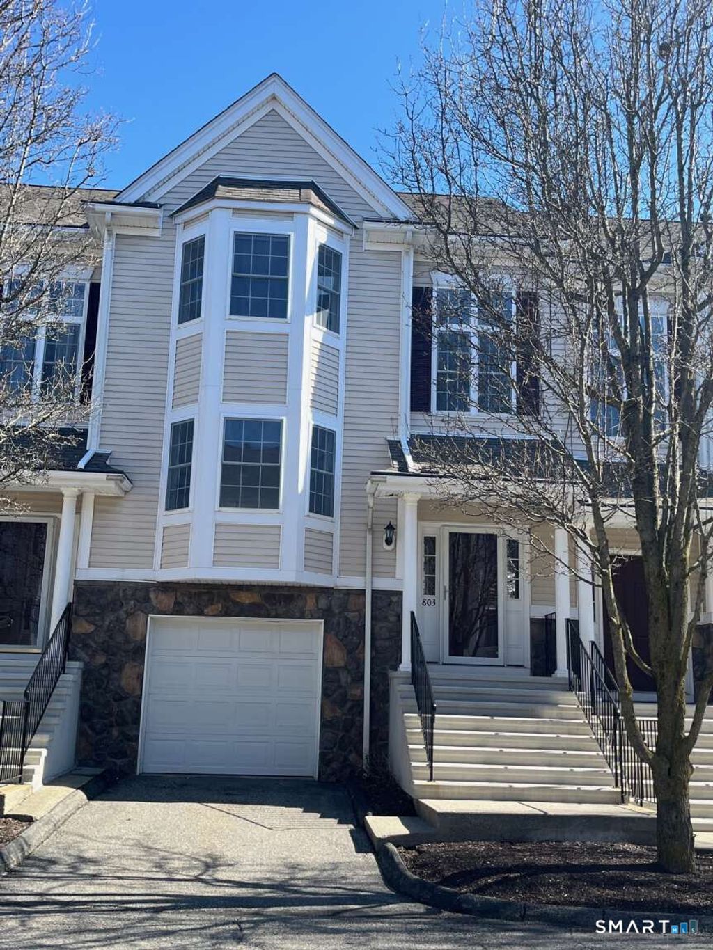 Welcome to 803 Larson Drive, a beautifully renovated tri-level townhouse nestled in the highly desirable and beautifully maintained Kensington Woods community in Danbury. Perfectly positioned near the Connecticut-New York border just off exit 2 of I84, this 1650 square foot home offers unbeatable convenience with quick access to major highways, shopping and dining. Step inside to discover a spacious bright and airy open-concept main level featuring brand-new luxury vinyl plank flooring throughout. The brand-new fully renovated kitchen is both stylish and functional, boasting quartz countertops, stainless steel appliances, modern light fixtures, and a charming bay window casual dining area with additional counter seating - perfect for entertaining. The adjacent dining room flows seamlessly to a private balcony through sliding glass doors, while the inviting living room is anchored by a cozy gas fireplace-ideal for relaxing evenings at home. A convenient half bath completes the main level. Upstairs, you'll find two generously sized bedrooms, each with its own updated full bathroom. The guest bedroom features a bright bay window reading nook. The primary suite impresses with vaulted ceilings, a walk-in & additional closet, and an updated en-suite bathroom with a double vanity. The lower level offers a large flex room which can be used as a guest room, office or gym, with sliding glass doors leading to a patio. Garage and driveway. Complex offers gym, clubhouse, and heated pool