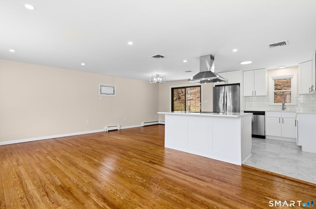 Welcome to 46 Rainbow Court, a beautifully updated home tucked away on a quiet culdesac in Hamden. Set on an elevated lot, this property offers both privacy and a wonderful setting for everyday living and entertaining. The upgraded, openconcept kitchen is the heart of the home, featuring stainless steel appliances, a spacious center island with electric oven and cooktop, and a sleek range hood overhead-perfect for cooking and gathering. Hardwood floors throughout the home have been recently refinished, adding warmth and a fresh, modern feel. This home offers two fully updated full bathrooms and the convenience of a twocar garage. Step outside to a very large rear deck, ideal for hosting summer gettogethers or simply relaxing while surrounded by mature trees that provide excellent privacy. With its peaceful culdesac location, elevated setting, and thoughtful updates throughout, 46 Rainbow Court is movein ready and offers the perfect blend of comfort, style, and seclusion. Owner/Agent