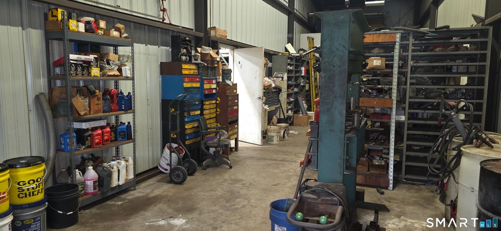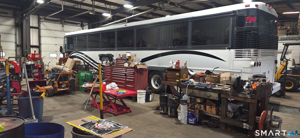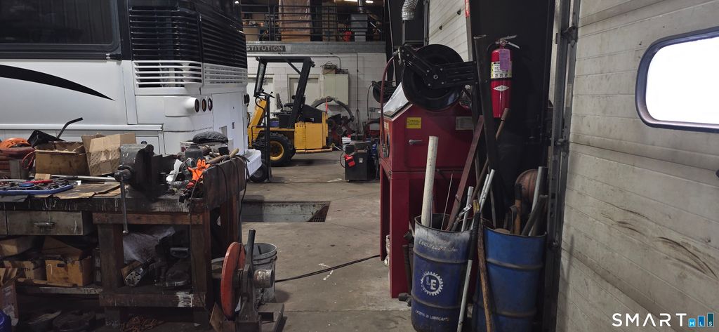Versatile commercial property offering a 6-bay garage with exceptional flexibility for automotive, contractor, or light industrial use. The layout includes 3 connected bays with 14' overhead doors at both front and rear, two service pits, two additional enclosed bays and one open bay-ideal for equipment storage, workshop use, or a service-based business. A dedicated wash bay with floor drainage, security lighting, and a comprehensive 20-camera system enhances functionality and security. The expansive stand-up loft provides excellent potential for storage or future business expansion. The office space, approximately 1,575 SF, features a welcoming waiting area, receptionist space, four private offices, a conference room, separate his and her half baths, locker room, storage, and direct access to the garage with two egress points. Additional highlights include ample on-site parking, underground utilities, propane heat with an 8,000-gallon tank, and tenant-paid utilities and maintenance. This property presents a unique opportunity for owner-users or investors, with the flexibility to lease individual bays, office space, or loft area-offering multiple income streams and endless potential.