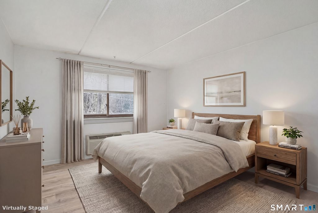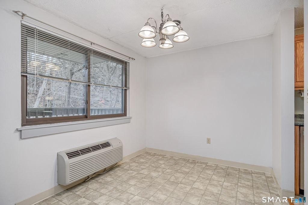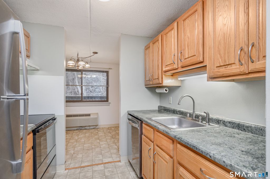 Welcome to this well-maintained and spacious condo offering comfortable living in a convenient location. This unit features a bright and open living and dining area with updated flooring and access to a private balcony overlooking a peaceful wooded setting, perfect for relaxing or enjoying your morning coffee. The kitchen is efficiently designed with ample cabinetry, modern appliances, and a functional layout ideal for everyday living. The generously sized bedroom offers great natural light and closet space, while the full bathroom is clean and well-kept with a tub/shower combination. Additional highlights include secure building access, wall unit A/C, and plenty of natural light throughout. The building offers on-site laundry facilities and additional storage space for added convenience. Located close to shopping, dining, and major commuter routes, this condo is a fantastic opportunity for both owner-occupants and investors alike. There is a pool at the complex, but it is our understanding it has not been opened in a few years.