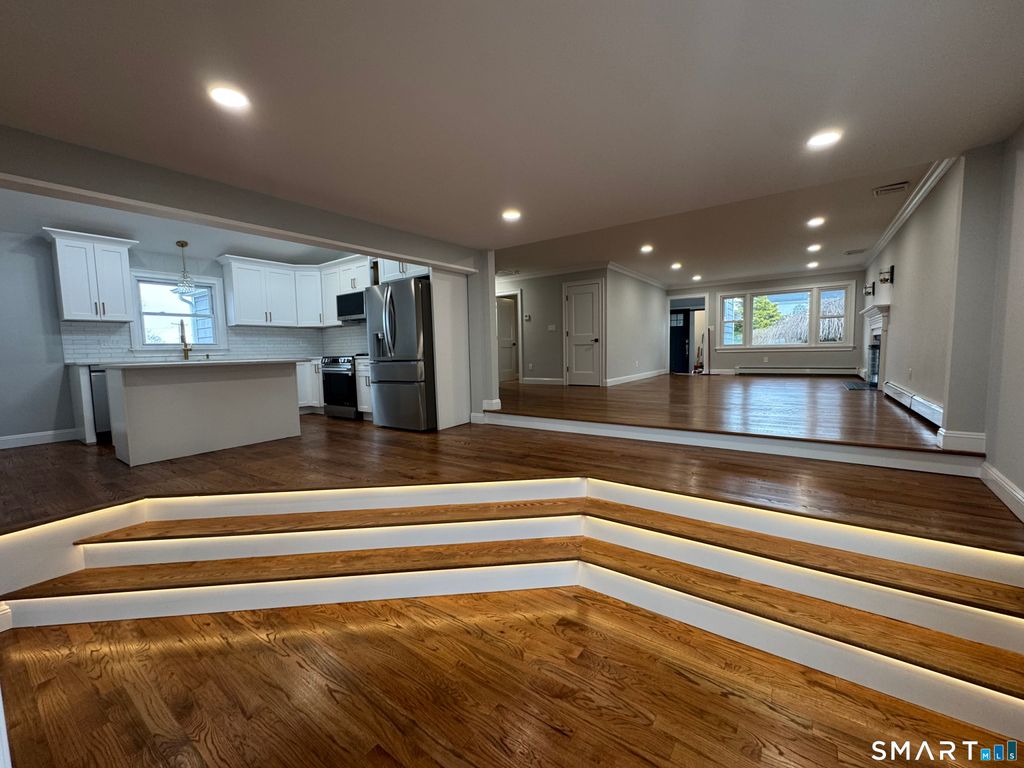 Welcome to this beautifully updated 4-bedroom, 2-bath home featuring a brand-new roof, new cedar shake impression siding, and a new central AC system. Inside, enjoy a bright, open floor plan with hardwood flooring throughout. Both full bathrooms are fully renovated with modern tile, and the kitchen dazzles with quartz countertops, new cabinetry (with under and over lighting), and brand-new stainless steel appliances. Ambient lighting in the stairway and all-new electrical wiring and outlets make this home modern and efficient. Baseboard heating is newly installed. Upstairs you will find the primary sweet with a walk in shower and your very own newly installed trex decking, talk about a view! With an open floor plan, hardwood floors, and water views stretching all the way to Long Island Sound, you're just a short walk from Ocean Beach and Pequot Avenue beaches. Don't miss out on this rare opportunity-homes like this simply don't come around often.