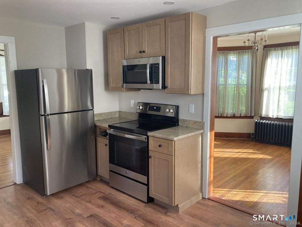 Imagine the perfect mix of privacy and convenience! This spacious 2 bedroom single family cape is bursting with charm and is ideally located just a 1/4 mile from the center of Wallingford. This home features a brand new just completed full eat in kitchen, dining room with built in hutch, large living room, covered front porch, and a capacious master bedroom with hardwood floors throughout. Two bedrooms upstairs and a brand new bathroom. Brand new energy efficient gas boiler, recently updated energy efficient windows, and laundry hookups are all included. If that doesn't get you excited water, trash, lawn care, and snow removal are included. Move in today and enjoy walks to local restaurants, the public library, YMCA, tennis courts, and Choate. Love where you live, all of this for $2,450 per month. Ideally a lease through April 2027 would be preferred, 2 month security deposit required. Must have excellent credit, clean background check, and verifiable income. Sorry, strict no pets policy. Renters Insurance Required.