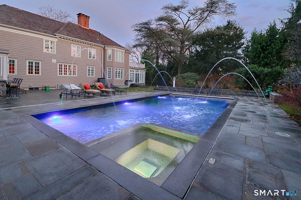 HOLISTIC HEALTH LUXURY RETREAT Restoration and longevity await at this oasis of wellness: medical grade hyperbaric oxygen chamber, professional infrared therapy bed and sauna. The private yard situated on nearly one acre glimmers with illuminated fountains cascading into the salt water pool, complete with spa. Prepare your meals at the poolside grill in the outdoor kitchen, and roast marshmallows in the evenings by the large stone fireplace. Enjoy the hydrangeas and greenery while reading a book or simply communing with nature. This luxury home is equidistant (.5 mile) to the Long Island sound beaches and downtown for shopping and fine dining. This is more than a summer rental; it is a restorative seaside sanctuary designed for the discerning traveler.