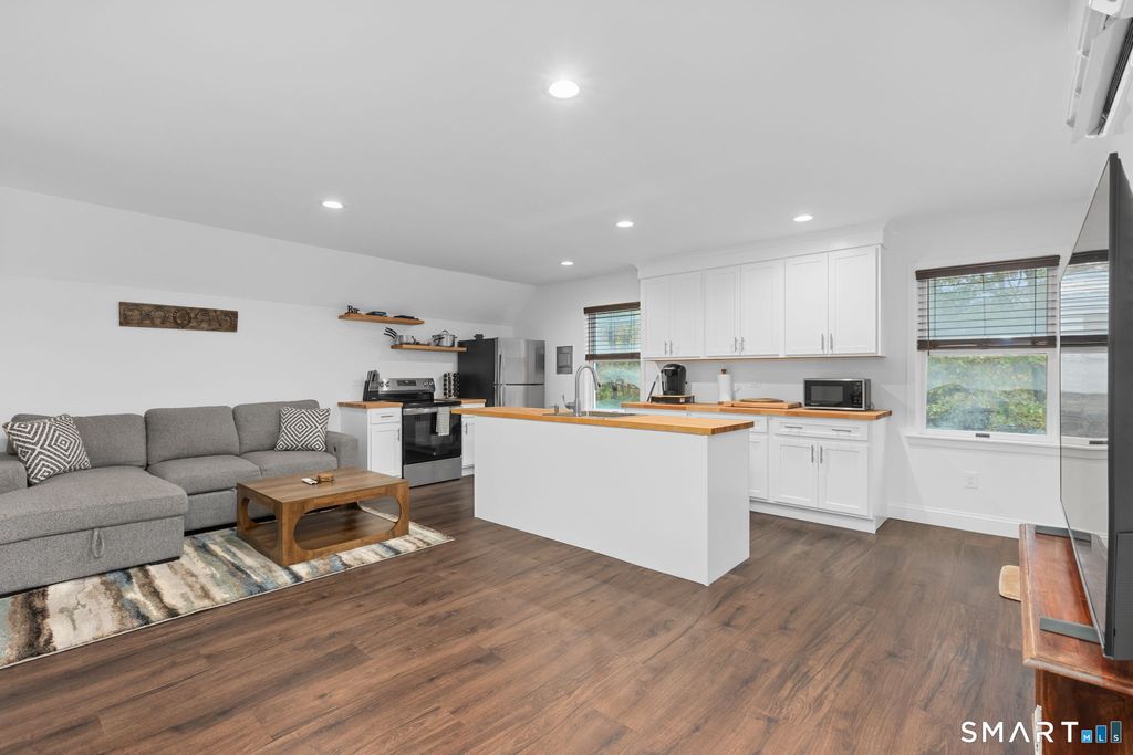 Welcome to 17 Curtis Drive, a serene and private retreat tucked away on a quiet cul-de-sac in the picturesque town of Sherman, CT. Set on a beautifully wooded 2.03-acre lot just minutes from Candlewood Lake and the New York border, this unique property offers both a charming 3-bedroom, 3-bath main residence and a separate 1-bedroom, 1-bath studio apartment-perfect for flexible living arrangements. The main home effortlessly blends rustic character with modern comfort. The sun-filled main level features soaring cathedral ceilings, skylights, and large windows that fill the space with natural light. A cozy family room with a fireplace and full bath, currently used as a main-level bedroom adds versatility, while the open-concept living and dining areas flow seamlessly into a spacious kitchen with a center island and French doors leading to an expansive deck, ideal for entertaining or enjoying the peaceful natural surroundings. Upstairs, a Juliet balcony overlooks the main living space and leads to the primary suite with vaulted ceilings and an en-suite bath, along with two additional bedrooms, a full bathroom, laundry room, and access to a loft. Hardwood flooring runs throughout, and a full basement offers ample storage. A two-car garage and generous driveway complete the home, all nestled in a tranquil, tree-lined setting. Above the garage, the recently renovated studio apartment provides a private and inviting space with its own entrance and laundry. Featuring a loft-style...