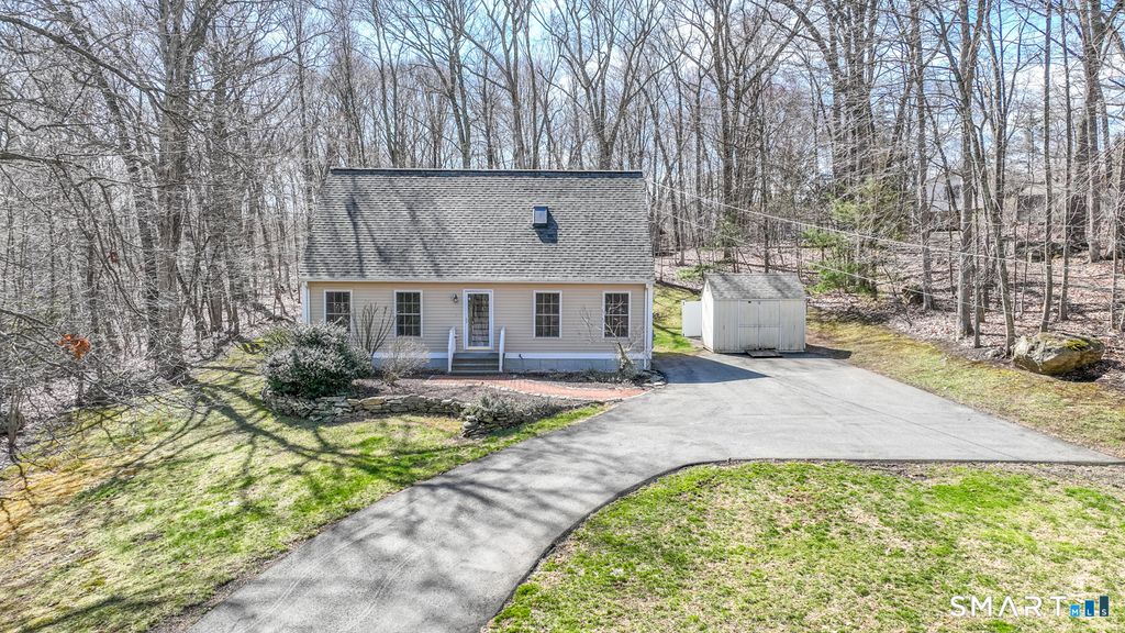 Welcome to 17 Flatbrook Road in East Hampton, a 4-bedroom, 2 full bath Cape set on a private 1.6-acre lot. This home offers approximately 1,500 square feet of living space with a flexible layout featuring two bedrooms and a full bath on the first floor, and two additional bedrooms and a full bath on the second floor. The main level includes a comfortable living room with a pellet stove, a dining area with access to the back deck, and a recently updated kitchen with granite countertops, stainless steel appliances, and modern finishes. Both bathrooms have been updated with attractive tile work and contemporary fixtures. Upstairs, the primary bedroom features built-in storage and natural light from skylights. The additional bedroom also offers functional space and storage options. The property provides a peaceful setting with a large backyard, deck, and shed. Don't wait on this one!!