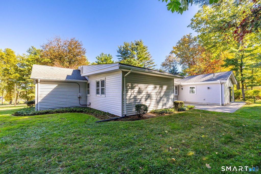 Prepare to fall in love & feel right at home here at 101 Collier Road! Lot professionally surveyed! Home will be sold together with adjacent .34 acre building lot for a total of 1.37 acres of beautiful level land - a rare find for historic Wethersfield. This 2151 square foot sprawling Ranch w/ 4 bedrooms & 4 baths is a mid-Century beauty. This home sits way back from the main road so if you're looking for tranquility & privacy, it's here to stay in this very special setting. Step inside to experience the feeling of timeless elegance from one spacious room to the next. You will be in awe of the impeccable condition thru-out including the hardwood floors, neutral-toned ceramic tiling & pristine fully-tiled baths. Living Room is graced w/a custom fireplace & flows into Dining Room & Kitchen - perfect for entertaining. Breezeway addition includes a lovely Family Rm with vaulted ceiling, laundry, bath & Sunroom w/sliders to backyard. Primary bedroom has accessible stunning bath with walk-in therapeutic jetted tub. Lower level offers a finished Rec Room w/2nd fireplace, Kitchen, full bath & storage. Oil heating, split-system CAIR, thermal windows. Enjoy the huge 3-car attached garage & 4th garage used as tool shed. Patios in both front & rear yards. Inviting front entry w/stone walls, pavers, & gorgeous plantings. Highcrest School district. Thisi very special Home Sweet Home & 1.37 acre lot offers great value & excellent expansion possibilities - a true Gem in lovely Wethersfield!