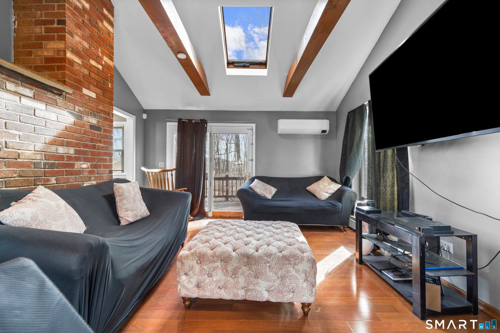 Welcome to this beautifully remodeled Colonial offering comfort, style, and move-in ready convenience. This home features 3 bedrooms, including a primary suite with skylights, and 2.5 updated bathrooms. The main level includes a formal living room, dining room, and a large den with exposed wood beams and skylights. A sunroom provides additional living space. Hardwood floors run throughout. Solar panels are installed for energy efficiency. Split units provide heating and cooling. Additional features include a 2-car attached garage. The rear deck and porch overlook a lightly wooded yard, offering privacy. Conveniently located near schools, shopping, and major routes. Move-in ready. Schedule your showing today.