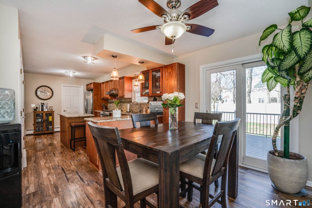 Located in a highly desirable Farmington neighborhood, this beautifully maintained home offers a spacious, open-concept layout complemented by quality finishes throughout. The sun-filled kitchen is the heart of the home, featuring granite countertops, cherry-stained maple cabinetry, stainless steel appliances, and a large center island-perfect for everyday living. Step directly from the kitchen onto an oversized deck, ideal for outdoor dining and gatherings. The main level flows effortlessly into a generous living room and an expansive dining/family room, providing exceptional space for hosting guests or relaxing in comfort. Upstairs, the oversized primary suite offers a private retreat, complete with a full bath and abundant closet space. Two additional well-proportioned bedrooms and a full bathroom with granite finishes complete the second floor. The finished lower level is designed for entertaining and versatility, featuring a granite counter island, additional cabinetry, and ample space for hosting or relaxing. A flexible bonus room offers endless possibilities-perfect for a home office, gym, or playroom. Outdoors, the level, fenced yard offers a tranquil sanctuary framed by mature surroundings, while a charming fireplace elevates evening ambiance and yearround enjoyment. An oversized two car garage adds exceptional convenience, providing abundant storage and room for vehicles and equipment.