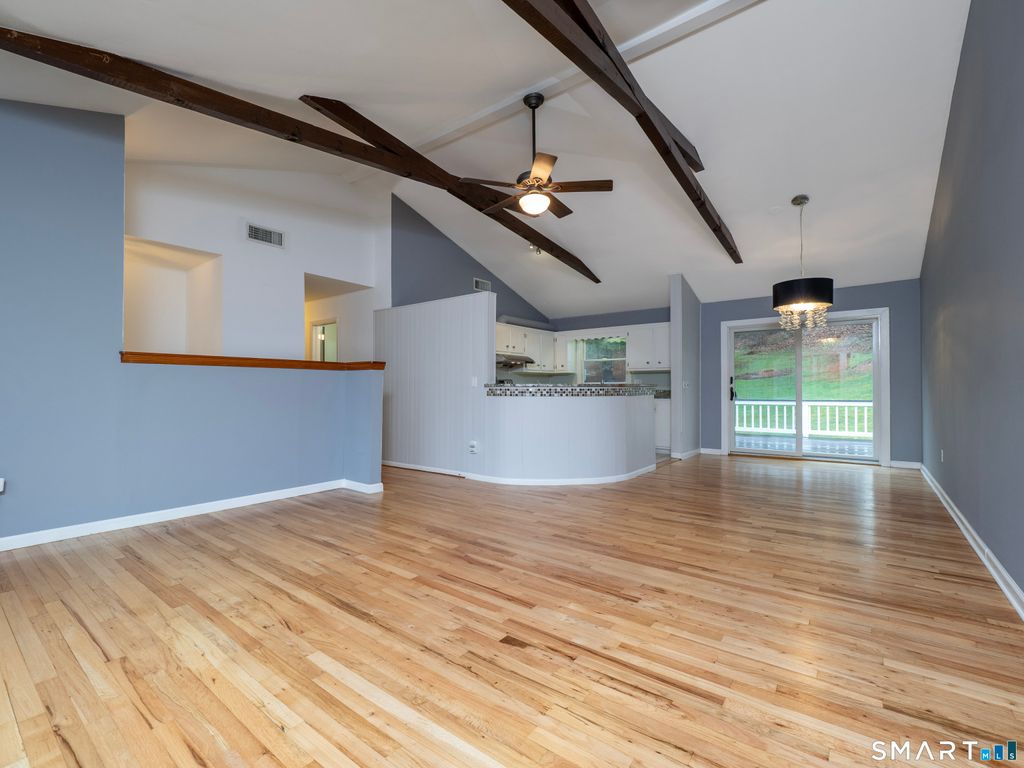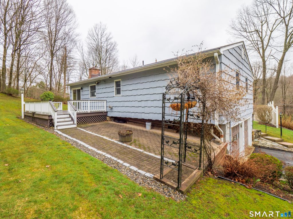 Welcome to an exceptional opportunity in one of Danbury's most desirable neighborhoods, ideally situated on the Ridgefield border and just moments from the prestigious Wooster School. This lovingly maintained home offers the perfect blend of comfort, efficiency, and lifestyle. Boasting nearly 1,800 square feet of living space, including a beautifully finished lower level, this home is designed for both everyday living and entertaining. The main level features a bright and inviting kitchen, formal dining room, and spacious living room-all enhanced by stunning vaulted ceilings that create an open, airy atmosphere filled with natural light. Three generously sized bedrooms and one and a half baths complete the main level, with gleaming hardwood floors throughout adding warmth and timeless appeal. The finished lower level expands your living space with a large family room centered around a cozy wood-burning fireplace-perfect for relaxing evenings-as well as a convenient laundry area. Step outside and enjoy multiple outdoor living spaces, including a deck and patio overlooking a backyard that's ideal for play, entertaining, or even winter sledding fun. This home is not only beautiful but thoughtfully upgraded, featuring a 200-amp electrical service with generator hookup (2024), a hybrid heat pump water heater (2024), dense-pack cellulose insulation, and insulated Andersen windows for enhanced energy efficiency plus central air conditioning!