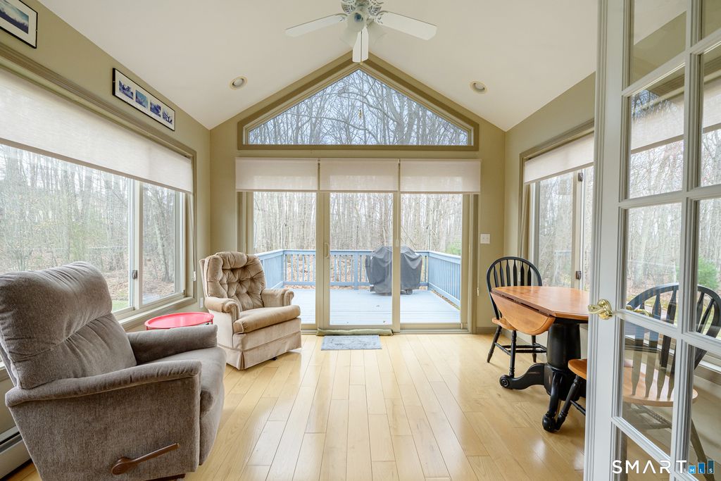 Welcome to 3 Oriole Drive, set within the highly desirable 55+ community of Briarwood Falls in Killingly CT. This impeccably maintained ranch offers comfortable one-level living with thoughtful updates and a warm, inviting feel. The home features two bedrooms and two full bathrooms, including a primary suite with private bath. Hardwood floors run throughout, complemented by abundant natural light that fills each room. The spacious living room is highlighted by French doors that lead to a bright four-season sunroom-perfect for relaxing or enjoying additional year-round living space, as well as access to an attached deck for entertaining and grilling. Convenience is key with main-level laundry, while the full basement provides ample storage, workshop space, or potential to be finished for additional living area. An attached one-car garage and ample parking further enhance everyday ease. Recent updates include a new natural gas heating system, mini-split heat pumps for efficient cooling, and a whole-house generator for added peace of mind. Set within beautifully maintained grounds, Briarwood Falls offers access to a 4,000 square foot clubhouse and a variety of social activities, creating a vibrant yet peaceful community atmosphere. Ideally located near shopping, restaurants, and major routes, this home offers the perfect balance of ease, comfort, and convenience.