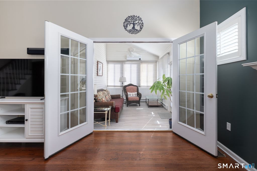 Rare opportunity - Detached 1771 sq.ft. unit featuring a first floor bedroom located in a 55 + community. Bright, sun-filled open concept layout offering hardwood floors new in 2014 throughout the first level. Livingroom offer a gas fireplace accented with a c-top window above, complimented by two additional windows. French doors flow into a heated and air-conditioned porch with new ceramic tile flooring, updated privacy blinds & ceiling fan. Porch opens to a 18x14 Trex deck new in 2014. Kitchen features a 3 - seat breakfast bar, granite counter tops, new er Frigidaire oven and range, Whirlpool refrigerator, dishwasher, garbage disposal. Plenty of cabinet space - pantry cabinet with pull out draws, a spice rack cabinet, pull out draws for pots & pans, lazy susan..... It opens to a generously sized Dining room ideal for entertaining. First floor bedroom has a spacious 10x9 full bath, double closets with shelving and wood floor. Upper-level offer additional 2 bedrooms with new vinyl wood flooring in 2023, plenty of storage space with 3 good size closets and walk in Attic. Full bath with linen closet, new countertops and fixtures.