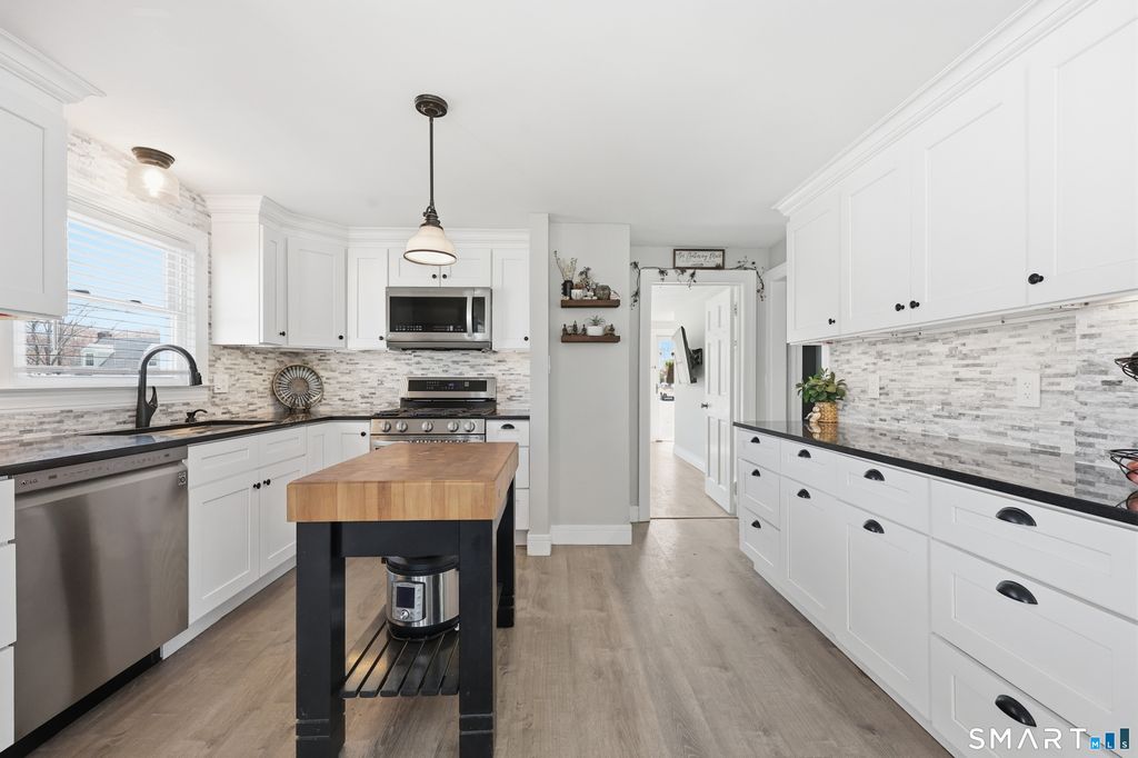 Charming and beautifully maintained, this 2-bedroom ranch offers the ease of one-level living paired with thoughtful updates throughout. The heart of the home is a stunning, newer kitchen-tastefully updated and perfect for both everyday living and entertaining. Extending just beyond the kitchen is a spacious, light-filled dining area that enhances the home's open feel! Enjoy added efficiency with leased solar panels, helping to reduce energy costs, along with the peace of mind of a conversion from oil to natural gas in 2021, complete with a new furnace. The finished lower level provides valuable additional living space-ideal for a family room, home office, or gym-while the dedicated laundry area is both functional and well-equipped, featuring a sink and cabinetry for extra storage. This space is not heated, yet offers great utility and potential for a variety of uses. Step outside to a fully fenced backyard offering a secure space for pets, gardening, or relaxing outdoors. While the fencing varies in style, yet creates a fully enclosed and usable yard. Ideally located, this home offers convenient access to nearby parks, shopping, and dining, as well as local favorites like Mill Pond Park. Enjoy a walkable setting with proximity to neighborhood schools, making daily routines simple and accessible. With easy access to major highways and a short commute to Hartford, this home combines comfort, efficiency, and location in one appealing package. PHOTOS UPLOADED FRIDAY.