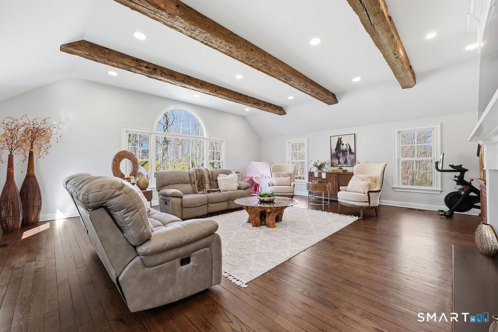Beyond a stately gated entrance, this exceptional estate reveals itself as a masterclass in elegance and privacy, gracefully set on 10 acres of pristine grounds surrounded by tranquil woodlands and enchanting bridle trails. Offering a rare blend of sophistication and serenity, it is a true legacy property for those who value both distinction and seclusion. Step through the front door into a breathtaking home where refined design meets modern comfort. At its heart lies a stunning chef's kitchen, reminiscent of the pages of Architectural Digest, featuring top-of-the-line appliances, custom cabinetry, and meticulously curated details that balance beauty and function. The space flows seamlessly into an elegant dining area with a striking wine display, all overlooking the sparkling pool and expansive bluestone patios. The living and family rooms are anchored by a dramatic double-sided fireplace, showcasing exceptional custom stonework. Soaring ceilings with handcrafted antique beams lend warmth and timeless character, creating a home that perfectly balances luxury, comfort, and elegance. When you step outdoors, the experience is nothing short of resort-like, with a spectacular pool, a spacious pool house, and beautifully crafted stone terraces that invite both lively gatherings and peaceful retreat. This home warmth in character is an ideal setting for intimate evenings or grand entertaining. A rare opportunity to create a world-class equestrian estate.