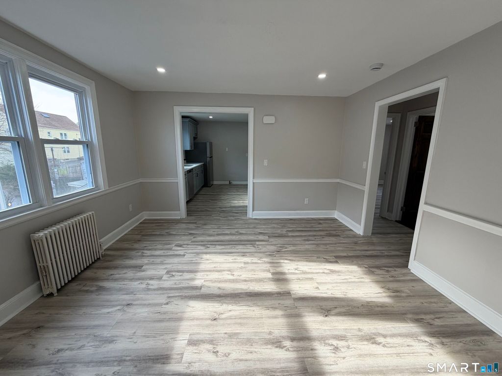 2nd-floor apartment, freshly painted and well maintained. Features gleaming hardwood floors with a fresh polyurethane finish, a newly updated bathroom floor, and new light fixtures throughout. Beautiful cabinetry with granite countertops, ample-sized bedrooms, and plenty of closet space. Includes a formal dining room and laundry hookups located in the basement. One off-street parking space is included. Garage parking is available at an additional cost. Tenant to help with snow removal.