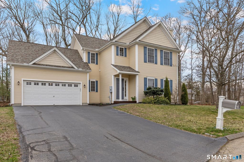 Stunning 4-bedrm Colonial nestled in the sought-after Royal Oaks neighborhood. This meticulously maintained home boasts 2,302 square feet of comfortable living space. Built in 2006, this property features an open flr plan that combines functionality w/modern aesthetics, perfect for both everyday living & entertaining. Plus large primary bdrm w/ensuite full bathroom & Finished LL Flex Room. Situated at end of a serene cul-de-sac, this home is just mins from the gorgeous Lake Pocotopaug & Airline Hiking Trail. These & multiple other State Parks offer endless opportunities for outdoor adventures, hiking, & relaxation in nature. Inside, natural light floods the great room, highlighted by impressive walls of windows that create an inviting light-filled atmosphere. The brick patio & private backyard provide an ideal space for summer barbecues or quiet evenings under the stars. Recent upgrades include a New Roof (2025), New Furnace (2022), and New AC/two-stage heat pump (2022), ensuring comfort & energy efficiency year-round. Tastefully updated with new hardwood flooring, fresh interior paint, and modern finishes, this home is move-in ready. You can rest assured knowing that numerous improvements have been made throughout the property, enhancing both value & aesthetic appeal. Built for today's lifestyle & perfectly located for those who appreciate both nature and a vibrant community. This beautiful home perfectly blends comfort, style, & location -an opportunity not to be missed