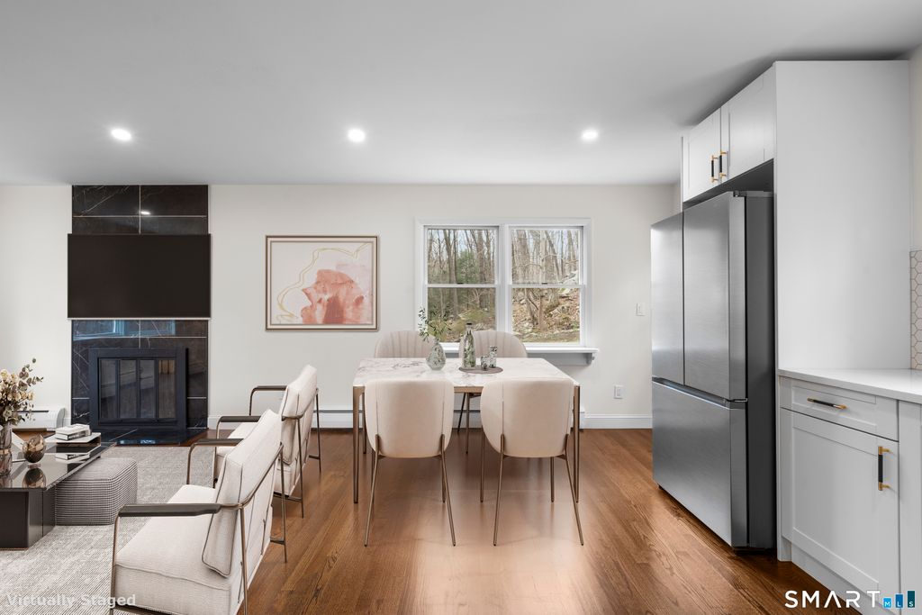 Welcome to your dream home located just steps from Devil's Den Park Trail. This beautifully updated property offers comfort, space, and privacy on nearly one acre of land. The home features a new roof and new siding, along with freshly painted interiors and hardwood floors throughout. There are new light fixtures that add a clean and modern feel to every room. The kitchen has been fully updated with quality cabinetry from Wren Kitchens, brand new appliances, and elegant quartz countertops, making it both stylish and functional. The living room includes an updated fireplace, creating a warm and inviting space. From the dining room, you can walk directly out to an oversized patio with a fire pit, perfect for relaxing or entertaining guests. All bedrooms and bathrooms have been remodeled with care and attention to detail. The fully finished basement provides additional living space, including a bedroom and a full bathroom, along with a walk out entrance that offers convenience and flexibility. The property also includes an attached one car garage and an oversized driveway with plenty of parking space. With its generous lot size and peaceful setting, this home offers a great sense of privacy while still being close to nature and local amenities.