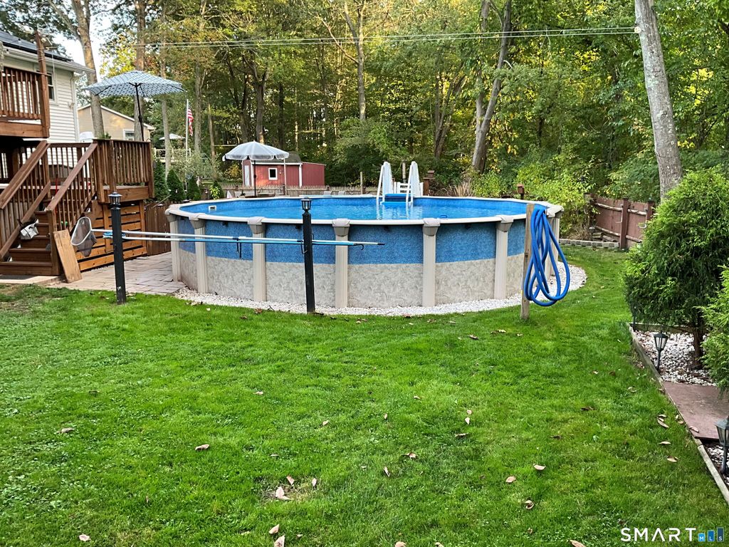 Welcome home to this beautifully updated raised ranch tucked away on a cul-de-sac. Remodeled kitchen and baths, hardwood floors on the main level, and a first-floor family room with fireplace and brand-new carpet create a move in ready feel. Step outside to a generous yard featuring a heated above ground pool and expansive decking-ideal for relaxing or entertaining, starting this summer. Newer furnace and A/C make this home a win for savvy buyers, plus a two-car garage, plenty of storage and close proximity to shopping complete this fantastic offering.