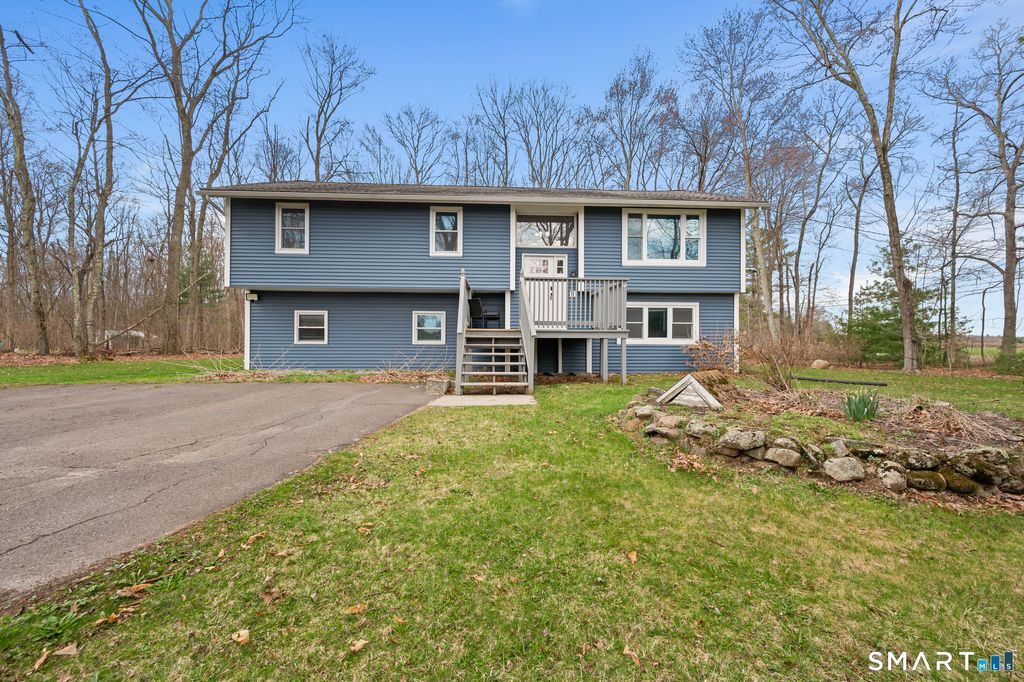 This 4 bedroom home sits on a nice, peaceful street overlooking blueberry bushes and apple orchards. Situated on one and a half acres with a large deck to watch the sunset. First floor includes a vaulted ceiling adding to its modern feel, an eat in kitchen with huge skylight letting in tons of natural light, dining room, 2 bedrooms, full bath and a primary bedroom with his and hers closets and a full bath. There is hardwood throughout this floor. Lower level consists of a family room leading out to the back yard, a bedroom, 2 storage closets and 2 more massive rooms that can be finished to fit your needs. These 2 rooms are 396 sq ft of possibilities! Exercise room/ office/ storage / in- law or at home business. This room has its own entry. Both floors have a pellet stove which heats the entire home comfortably. This home is in a quiet area however just a short drive to the lake, store, restaurants and more.