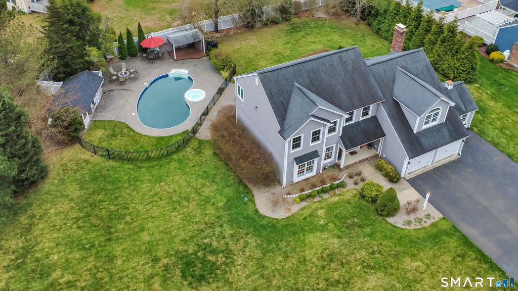 Welcome to 3 Bonna Street, a beautifully maintained and updated 4-bed/2.5-bath home with 2,700sf of bright, comfortable and elegant living space in one of Beacon Falls' most picturesque New England neighborhoods. The remodeled kitchen shines with granite countertops, under-cabinet lighting, and an ideal layout for everyday living and entertaining. Cathedral ceilings and skylights fill the family room and spacious primary suite with natural light, while a wood-burning fireplace adds warmth and charm. Freshly painted and move-in ready, this home features gleaming hardwood floors throughout the main living areas and brand-new carpeting in three bedrooms. The professionally finished lower level adds 900 sq ft of game da- ready living space and is perfect for entertaining, complete with two custom bars, including a wet bar with seating for 12, full-size refrigerator, microwave, built-in TV and pool table area. Additional highlights include a dedicated laundry room, generous storage, an oversized 2-car garage, smart home features, plus security system. Step outside to your private oasis featuring a heated in-ground pool and spa, expansive Trex deck with lighting, motorized awning, stone patio with firepit, and a gazebo with fan and mini fridge. A large shed with electricity and irrigation system add convenience. With public utilities, easy access to Rtes 8/84/63/69/42 and Metro-North rail plus Region 16 Schools, this like-new home offers exceptional comfort, style, and convenience.