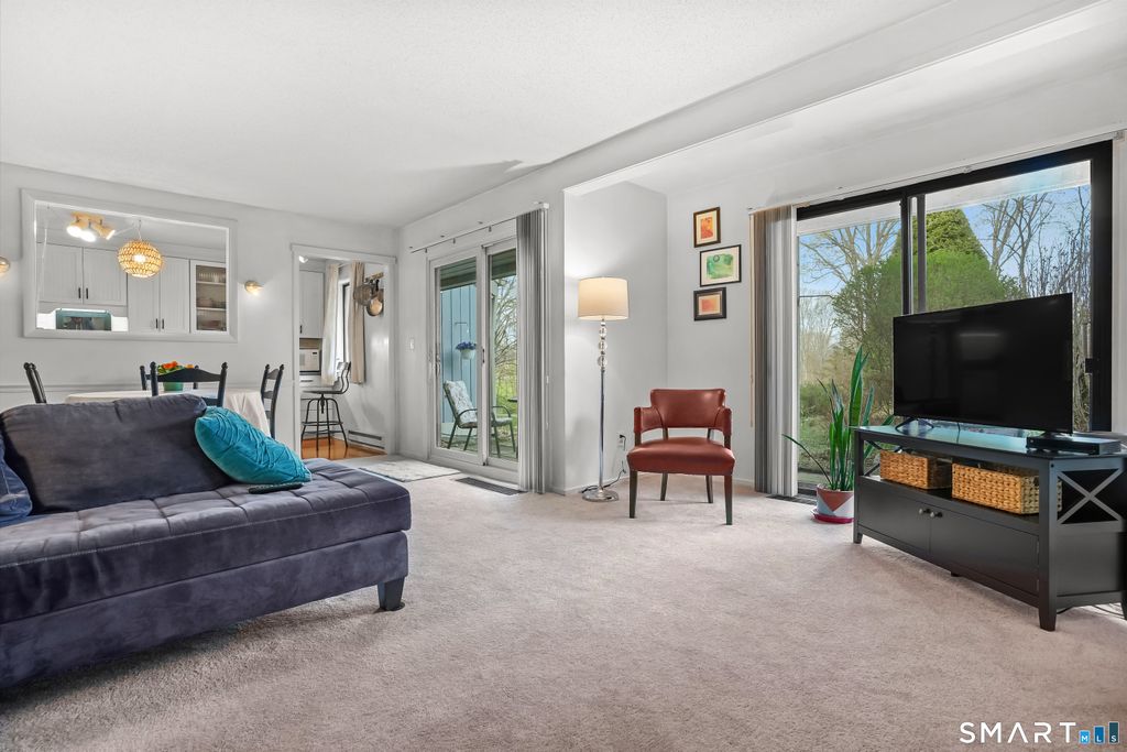 Nicely maintained and thoughtfully updated, this first floor Heritage Model is located in the highly sought after Heritage Village, an award winning 55+ community designed for active adult living. This ligh filled unit offers convenience with a short, level walk from the garage-approximately 25 steps-and the option to enter through the back patio with no stairs. The beautifully updated kitchen features white cabinetry with undercabinet lighting, granite countertops, engineered wood flooring, baseboard heat, and an expanded opening to the dining area, creating an airy, connected feel. The inviting living room includes new carpeting, radiant, electric heat, custom built-ins surrounding a propane fireplace, and access to an oversized patio overlooking the golf course. Both bathrooms have been tastefully updated, and nearly all windows-excluding the kitchen and one slider-have been replaced. Fresh paint throughout completes this move-in ready home. Located on Krueger Circle, which is perfect for walking your dog or relaxing on a park bench in front of one of the pond fountains. Heritage Village offers pools, exercise gym and a myriad of clubs, activities and social events like Computer Club, River Gardening Plots, Theatre Guild, Meditation, Ballroom Dance, Pottery Club, Men's Poker, Bridge, Culture Club, Companion Animal Club, as well as Yoga, Pickleball, Volleyball, Hiking Club and Billiards, just to name a few. One time Equity charge of $5,000 at closing to Heritage Foundation.