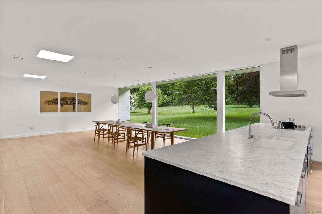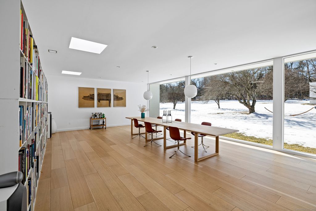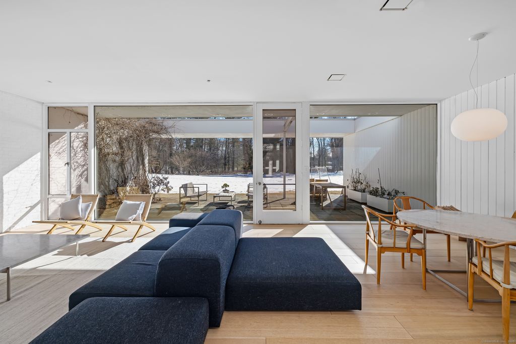 Summer furnished rental. An incredibly rare opportunity to reside in a mid-century modern home designed by world renowned Harvard Five Architect, Eliot Noyes. In The Lee Ault House, originally built in 1951 and recently renovated with the utmost care and consideration for maintaining the brilliant mid-century modern design, the indoors and outdoors blend seamlessly to create a stunning, light filled home. You will delight in expansive views of nature, mature trees and level property with patios & courtyards and floor to ceiling glass walls throughout. This truly spectacular home is both minimalist yet inviting with new white oak floors throughout. The newly installed, state-of-the-art spacious kitchen/breakfast room which features Miele appliances, John Pawson stainless steel fixtures, a large island with Carrera marble countertops, and custom cabinetry. Bathrooms feature Carrera marble sinks and custom white oak cabinetry along with John Pawson fixtures and sink in the primary bath. The private and tranquil 4+ acre property was originally designed by Landscape Designer Thomas Church, and the home's original pool has been opened and heated. Available Furnished with flexible lease term. The furnished option includes Fritz Hansen furniture (interior), Carl Hansen patio furniture, and Francis Mallman grill. How wonderful to have the good fortune to live in a work of art. Offered as a flexible term furnished summer rental starting June through August.