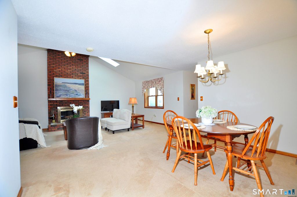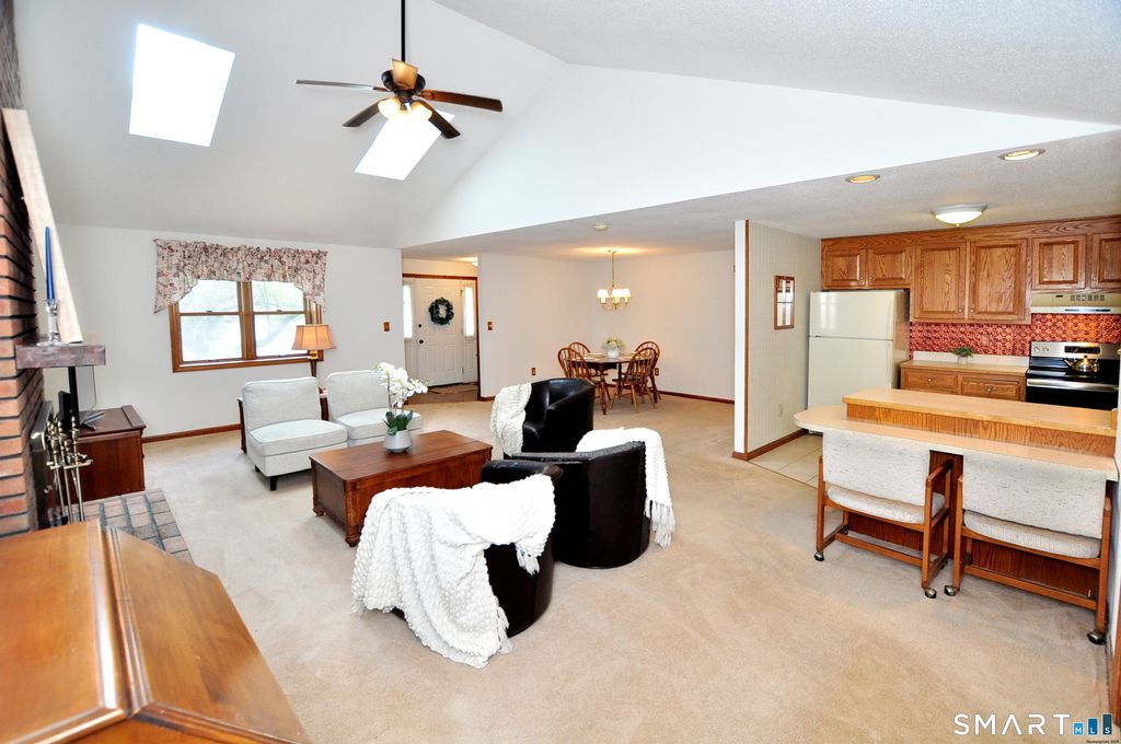 Easy Living! This spacious, one level, open floor plan, free standing condo with 2 car attached garage is bright, clean and move in ready. Vaulted ceilings in living room with skylights greet you then leads to a dining room, kitchen and huge sunroom. Conveniently located just minutes from Rt 91, Costco and everything you could ever need is nearby. Primary suite has it's own bathroom & walk-in closet. Second bedroom is steps from the hall bath. Laundry room is at the top of the stairs going down to the full basement with hatch, which could be future finished space. 2 car attached garage gives you plenty of space for all your storage needs. This is a very well cared for neighborhood with pride of ownership and beautiful landscaping. Don't miss out on this gem. Leave your snow shovels behind! The condo association takes care of exterior maintenance. Oldefield Farms is beautifully set on 35 acres, with half of those acres mowed, the other half full of wildlife for your enjoyment.