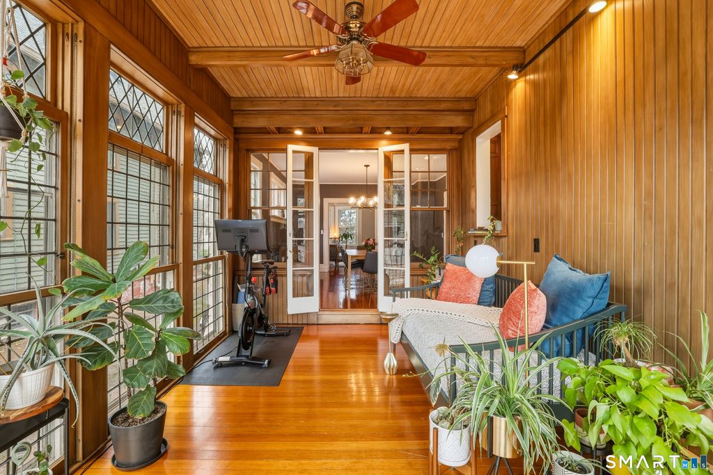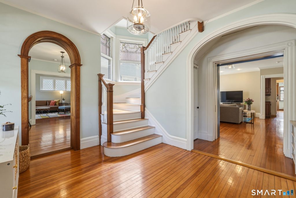 Rare opportunity in New Haven's sought-after East Rock neighborhood offering a spacious main residence plus potential for a separate apartment-ideal for owner-occupants, extended living, or rental income. The main home features 10 rooms, including 5 bedrooms and 3.1 baths, with beautiful original details such as leaded and stained glass, Palladian windows, custom millwork, pocket doors, and hardwood floors. Gracious living spaces include formal living and dining rooms, a family room with built-ins, and an updated kitchen with cherry cabinetry, granite countertops, center island, Wolf range, and butler's pantry. A bright south-facing sunroom opens to a multi-level deck and private outdoor space. With a slight modification of the now Laundry room converted back to the Apartment kitchen,The separate 3-room apartment, on the second floor, would include a living room, kitchen, bedroom, and full bath with private access from the back stair, making it perfect for rental, guests, or au pair. Recent upgrades to the property include major electrical and plumbing improvements, high-efficiency gas heating, multi-zone mini-split cooling, improved insulation, EV charging station, and a sauna outbuilding. A unique property offering space, character, and flexibility in one of New Haven's most desirable neighborhoods. *Floor plans are available as attachments for your review* Also listed a single family home MLS#24167701